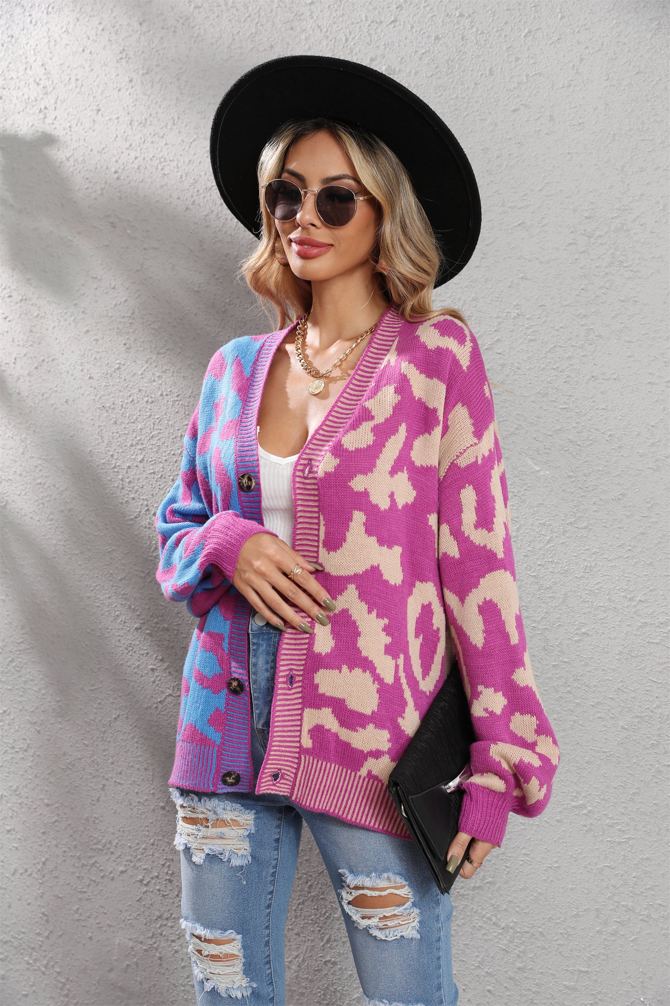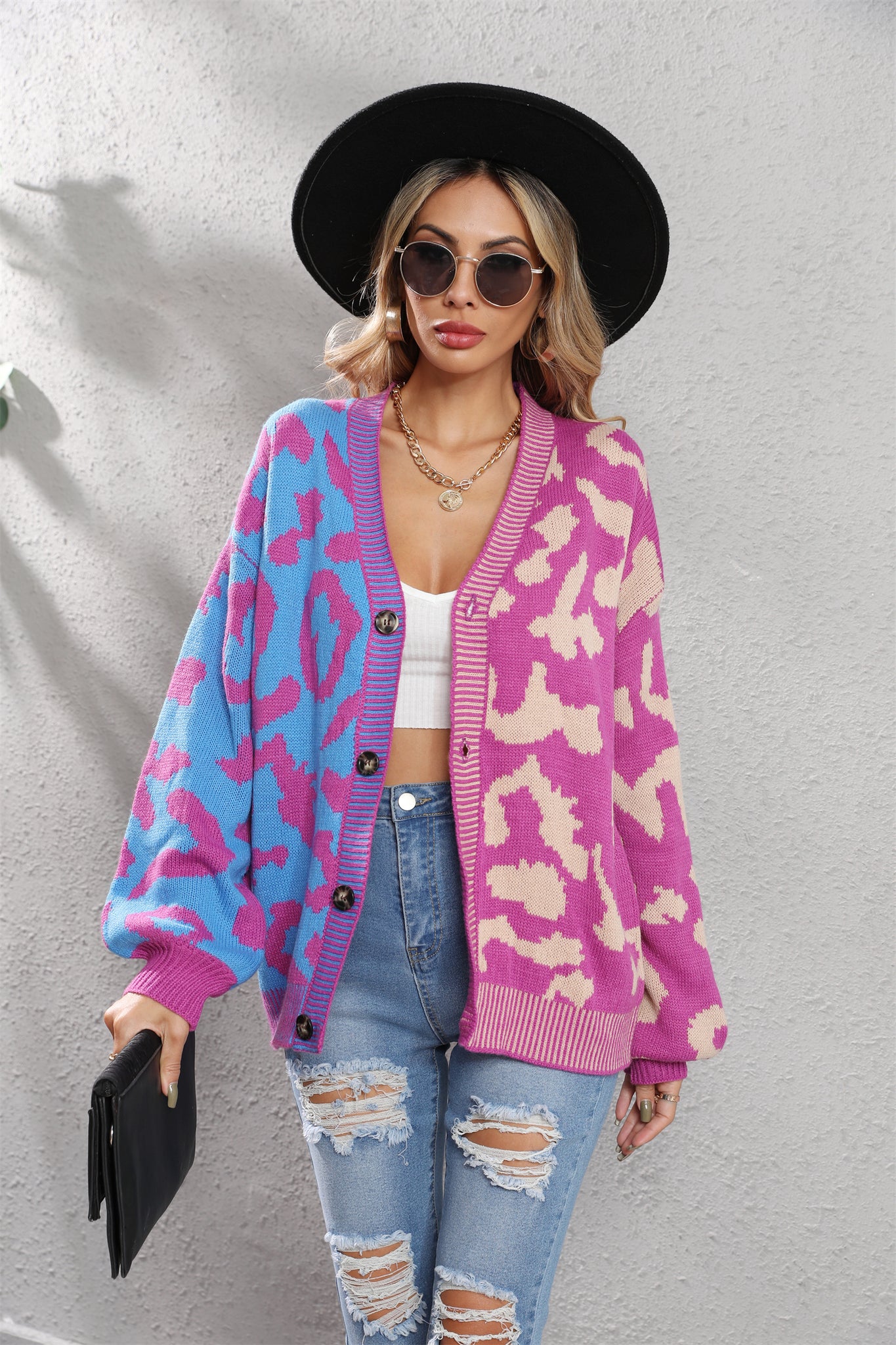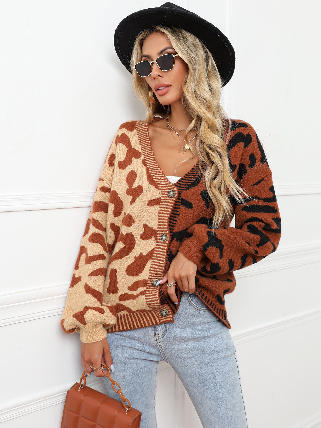 Winter Popular Sweater Leopard Splicing plus Size Cardigan Button Knitwear Sweater