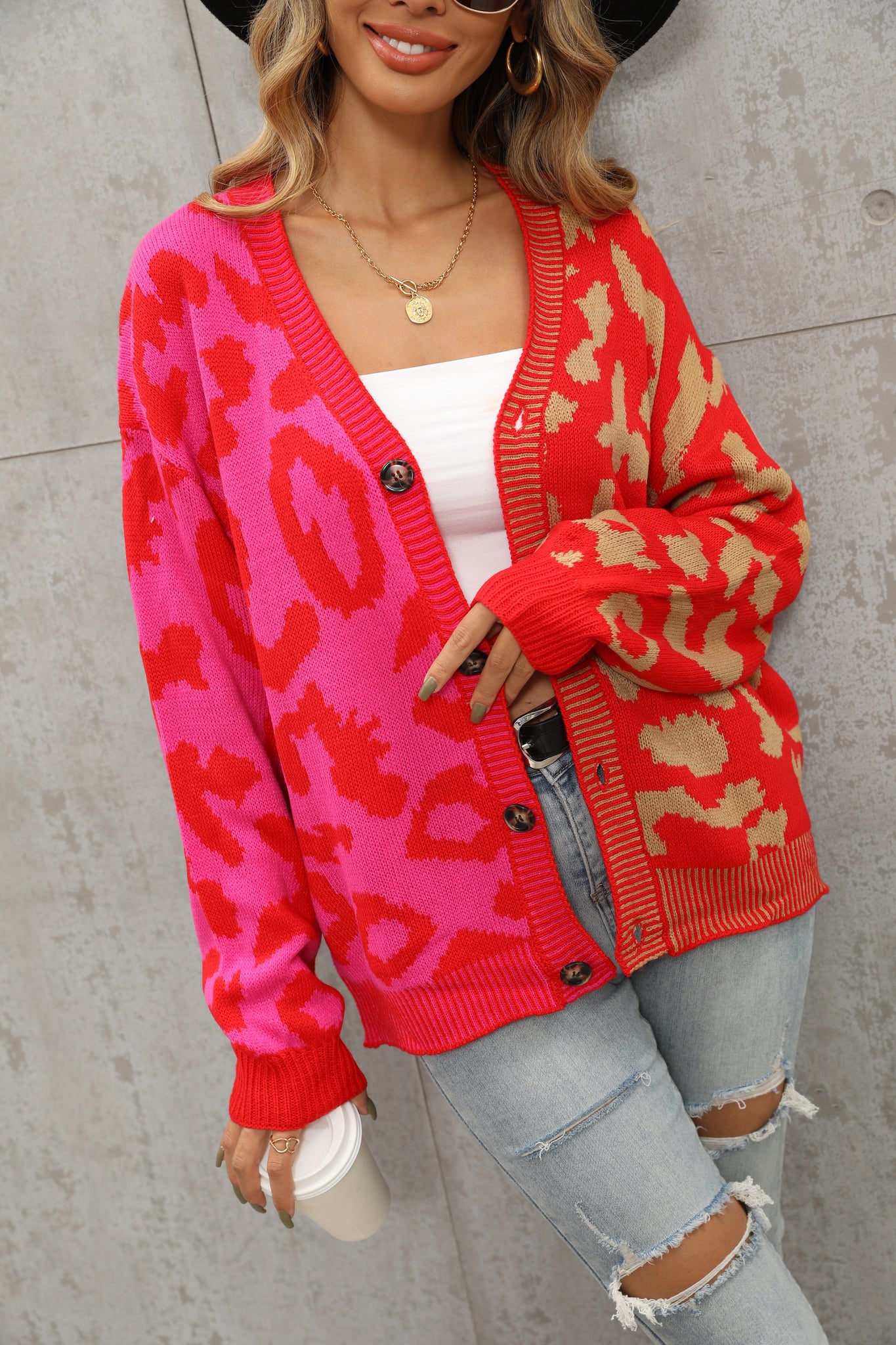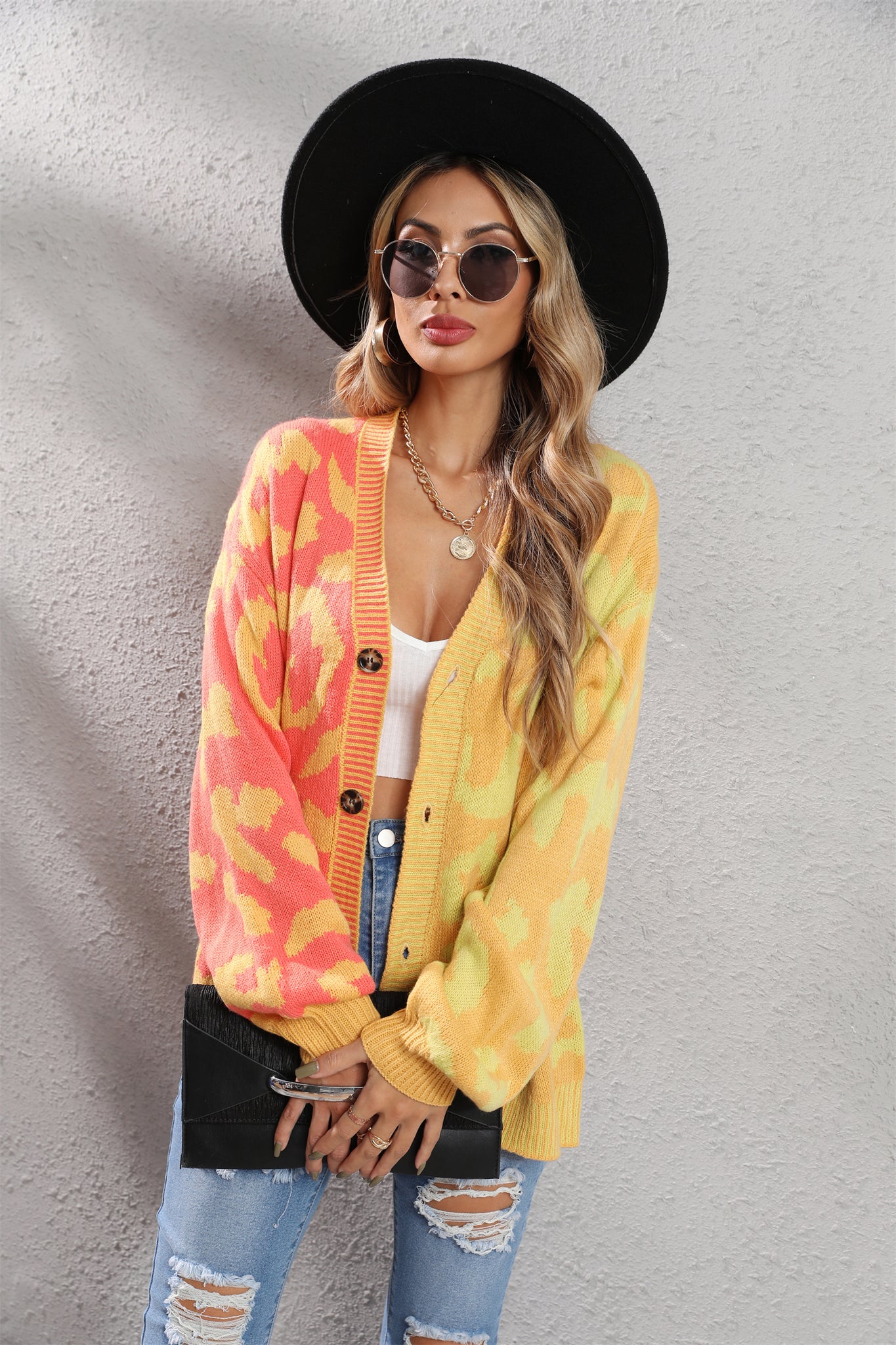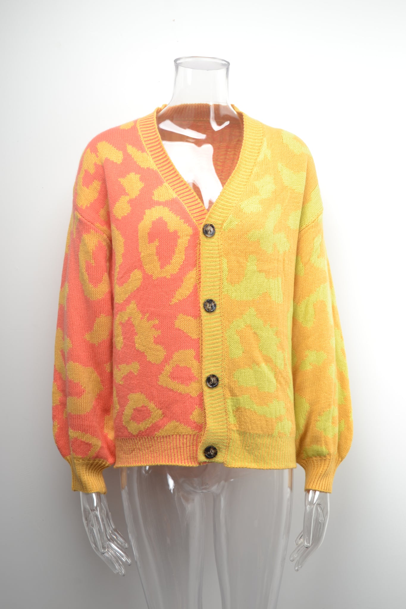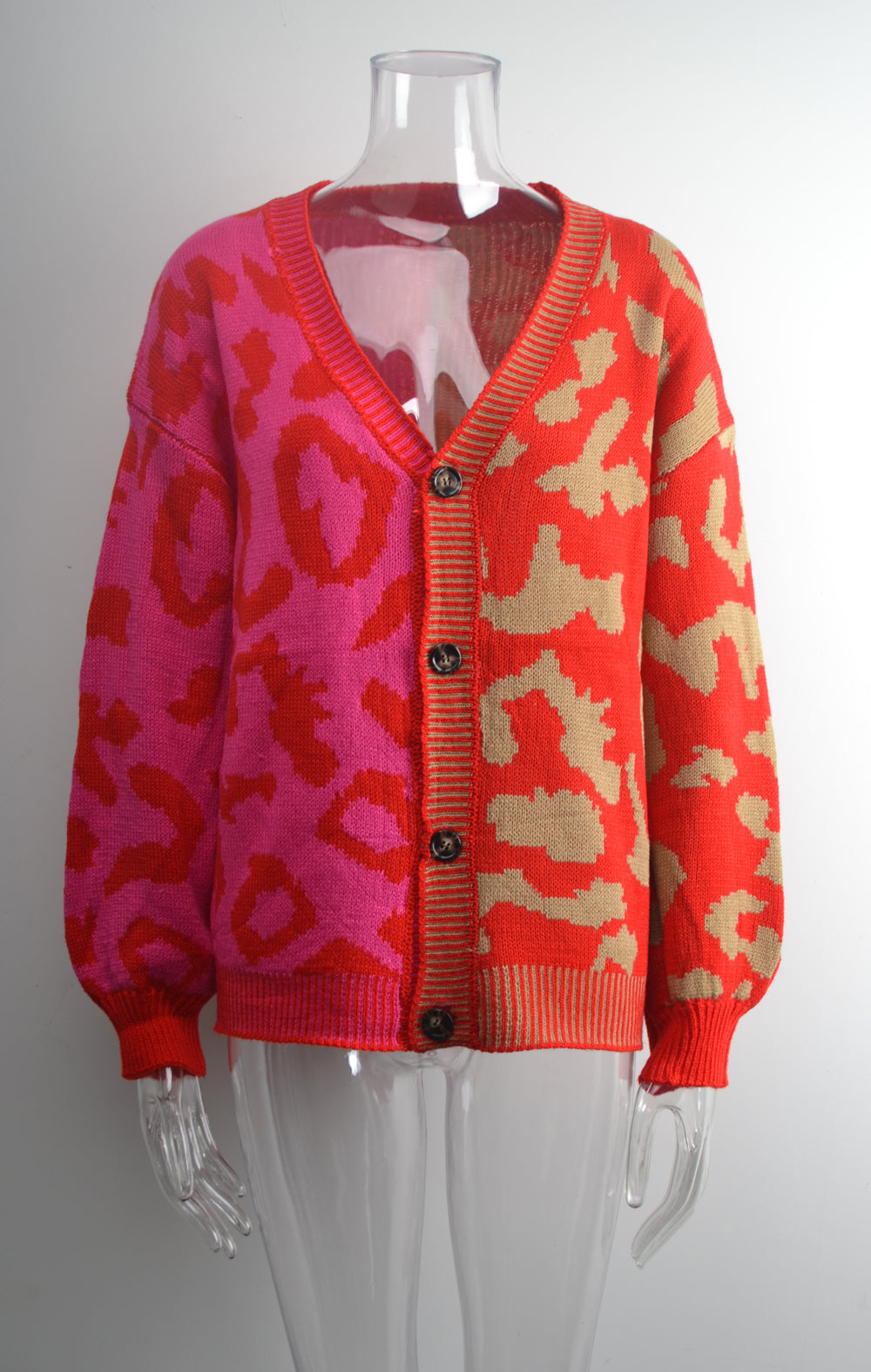 Winter Popular Sweater Leopard Splicing plus Size Cardigan Button Knitwear Sweater