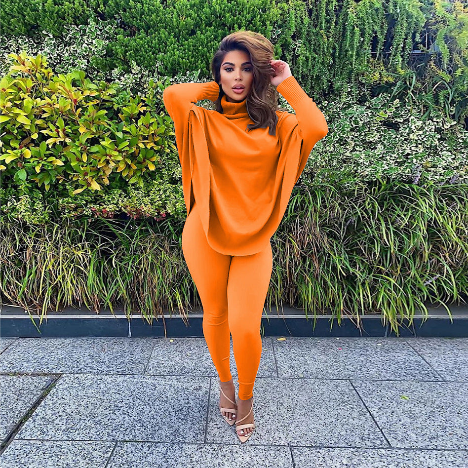 Winter Solid Color Batwing Long Sleeve Two-Piece Set Casual Set