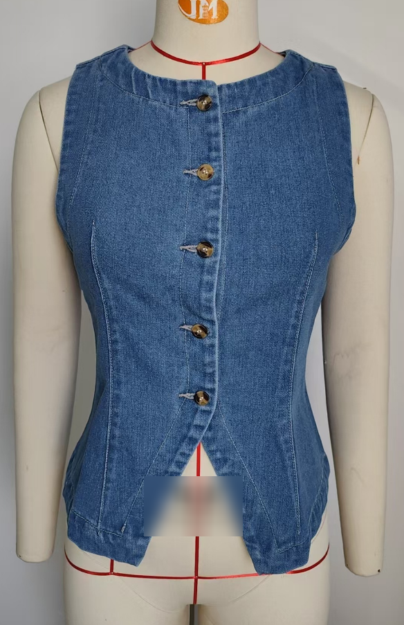 Women Autumn Washed Button round Neck Sleeveless Denim Vest