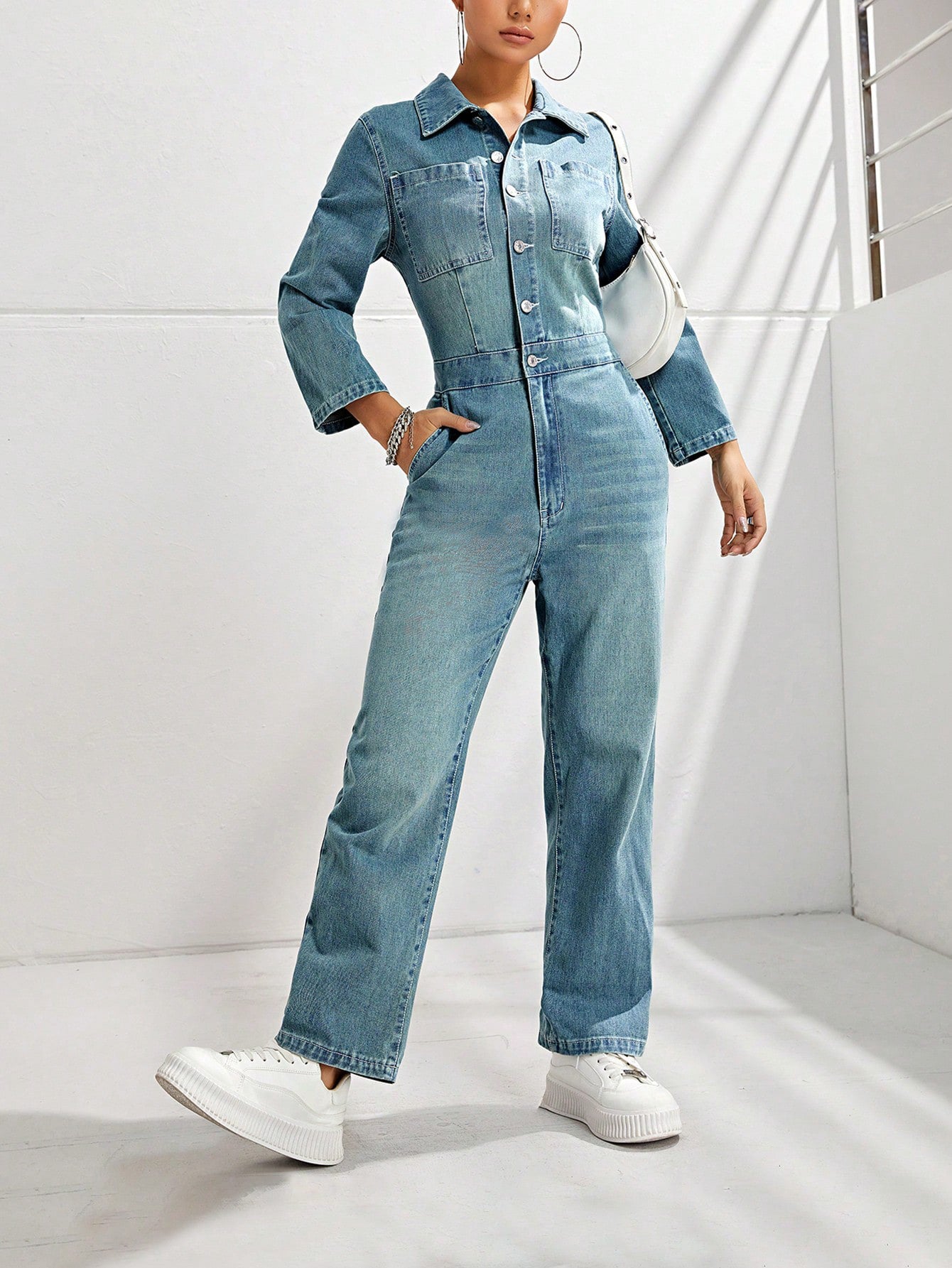 Women Casual Office Slim Fit One Piece Long Sleeves Jeans