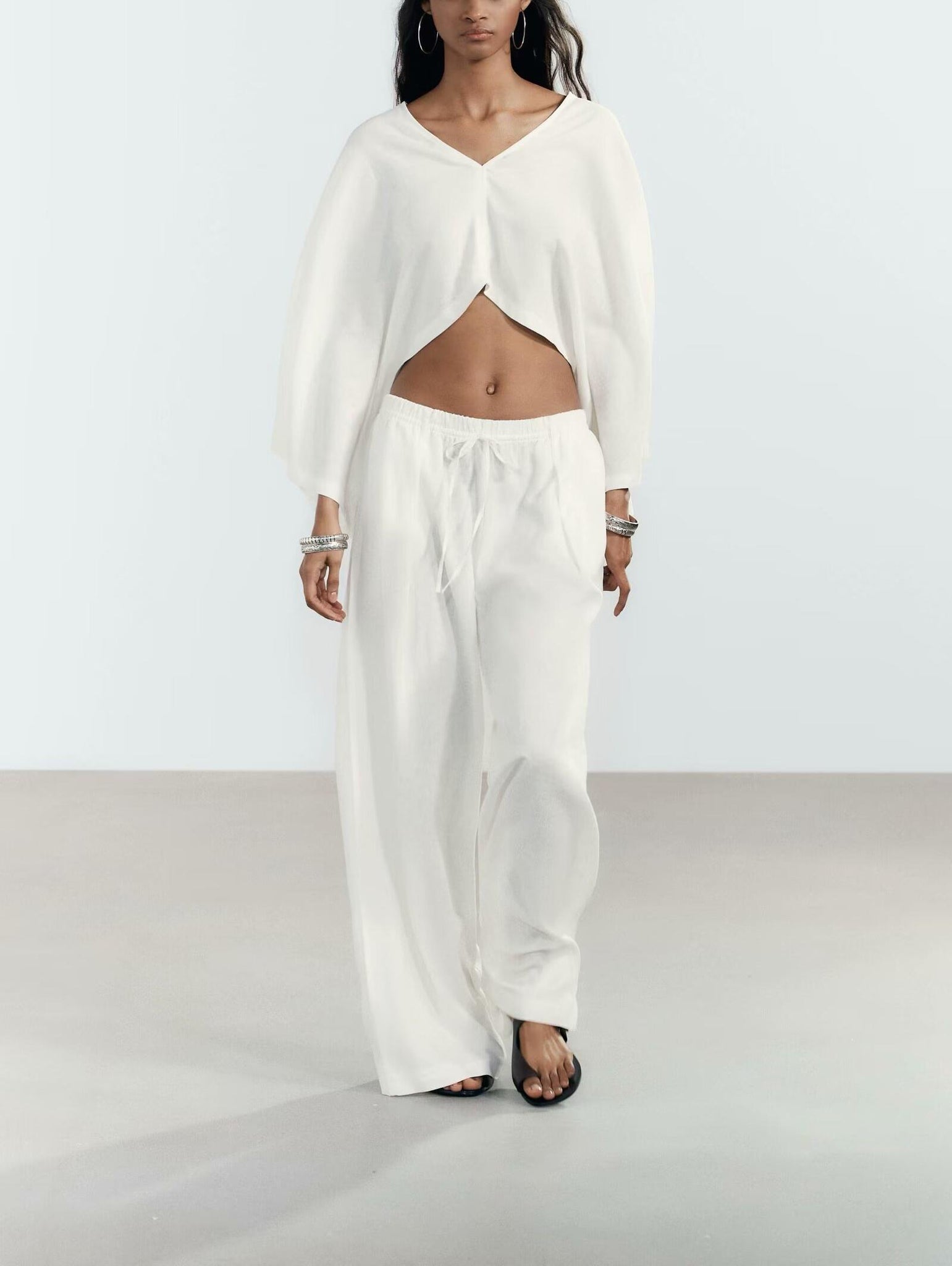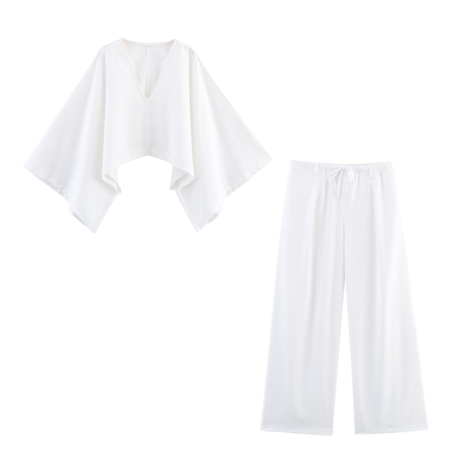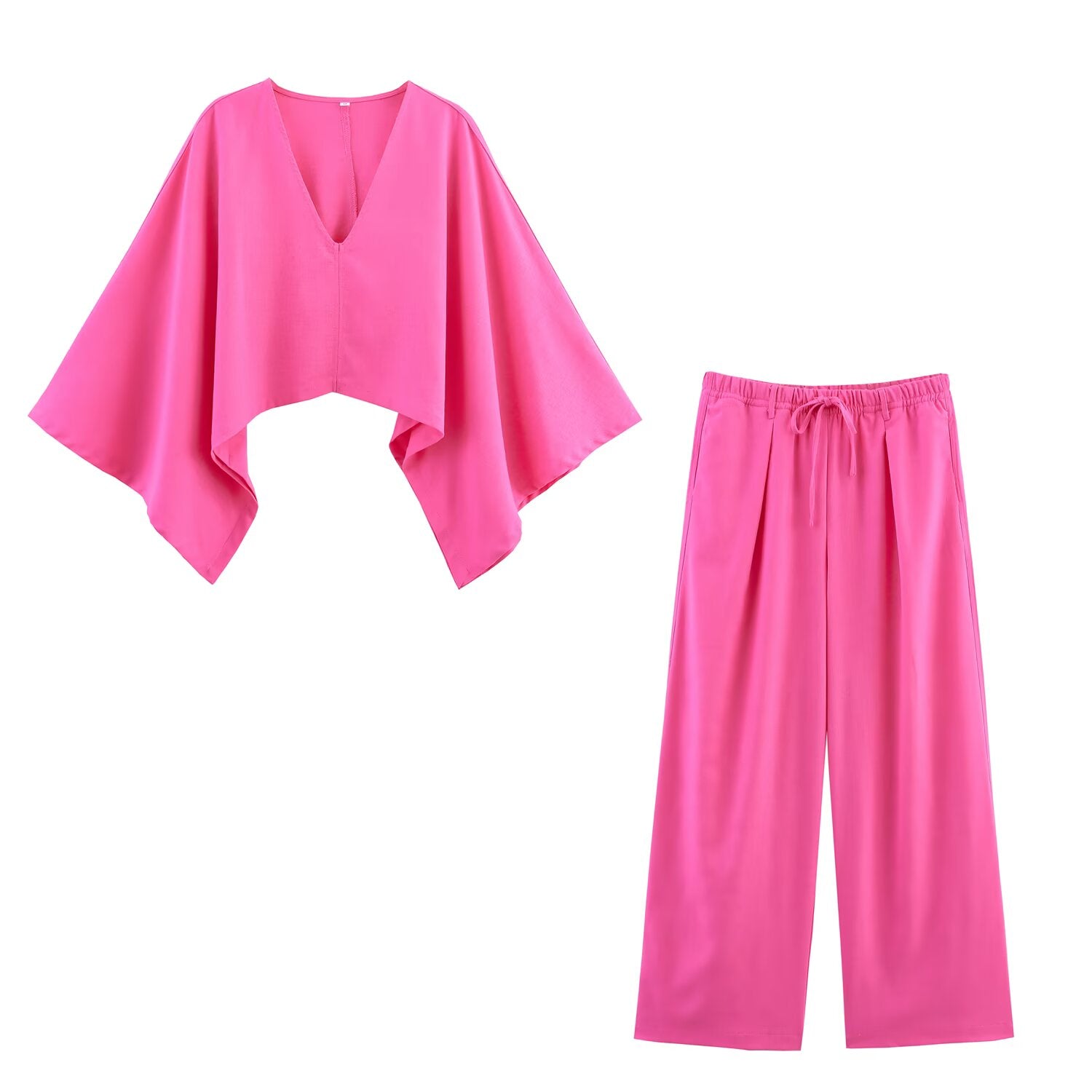 Women Clothing Asymmetric Solid Wide Leg Pant Sets