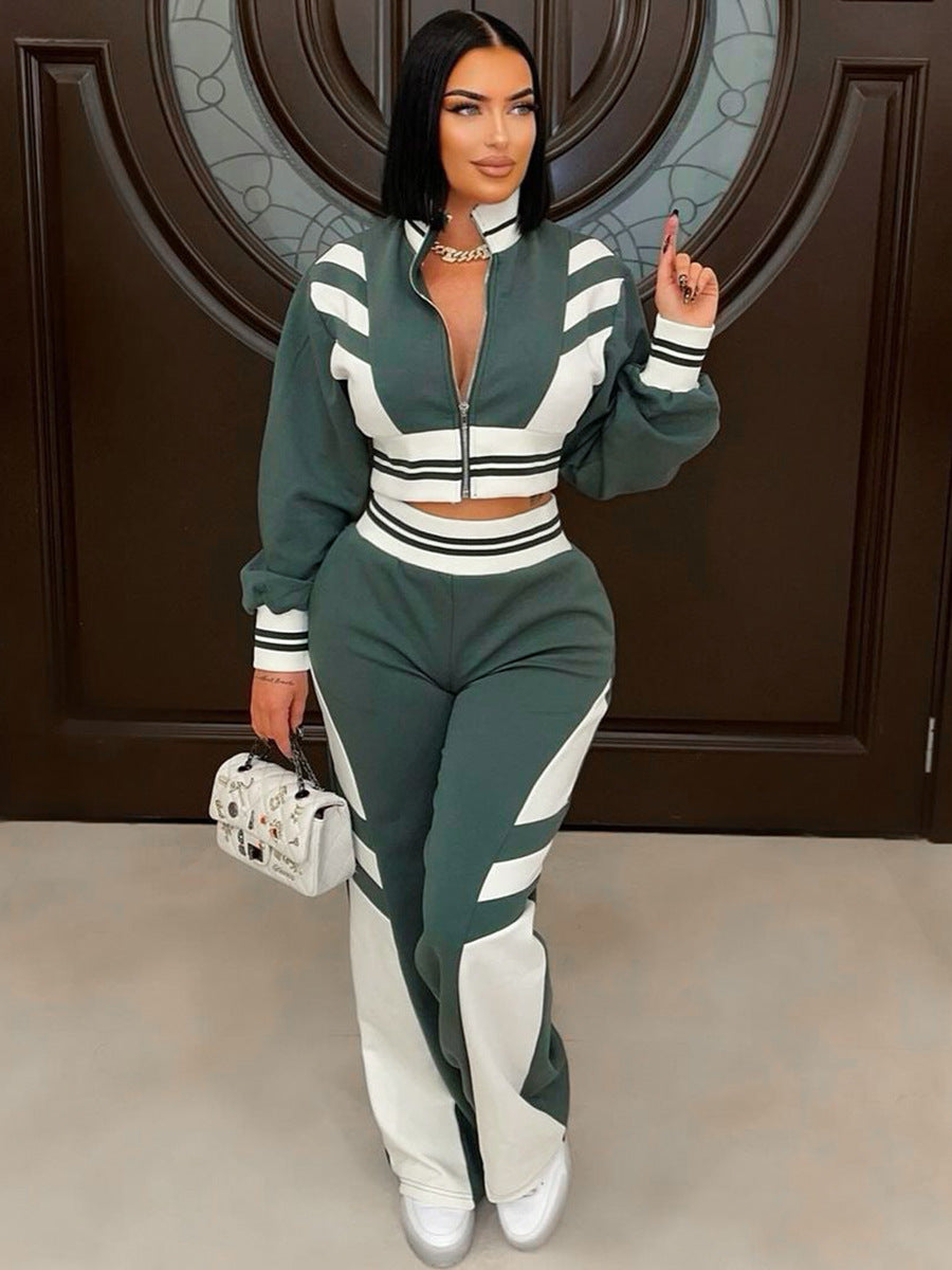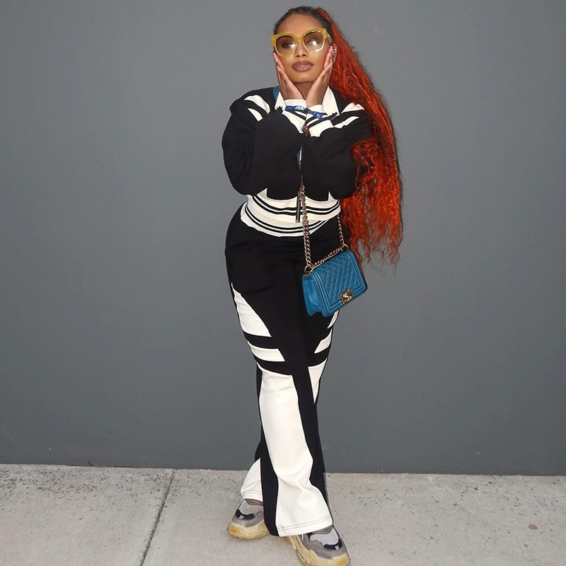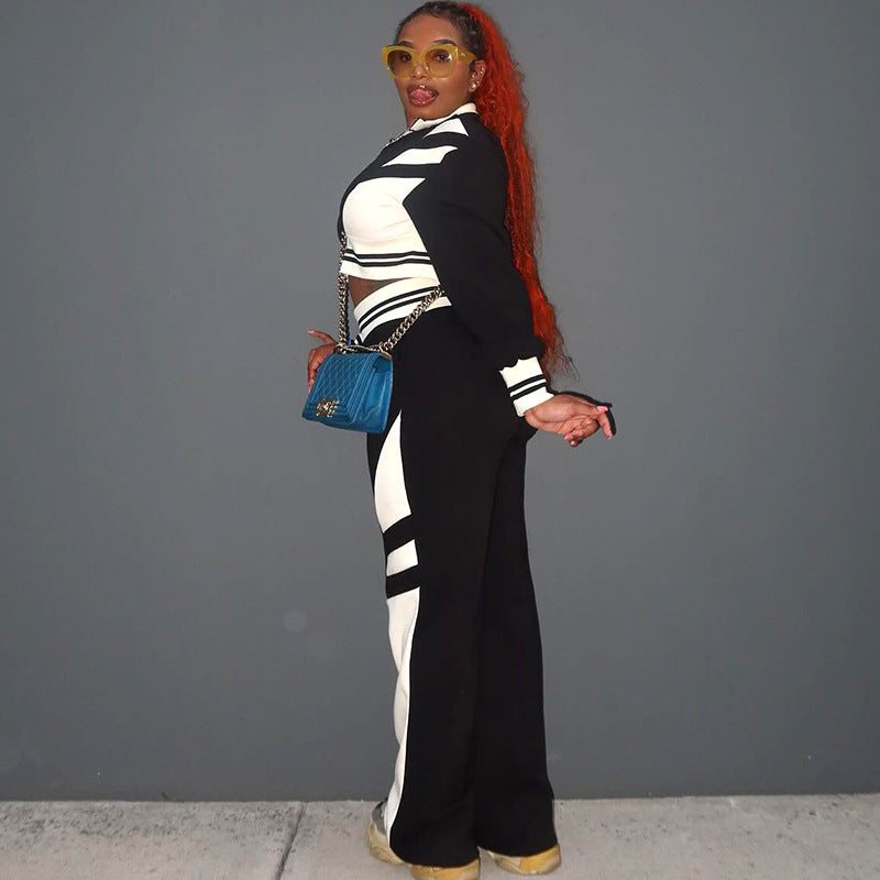 Women Clothing Autumn Trendy Sexy Black White Contrast Color Blouse Pants Women