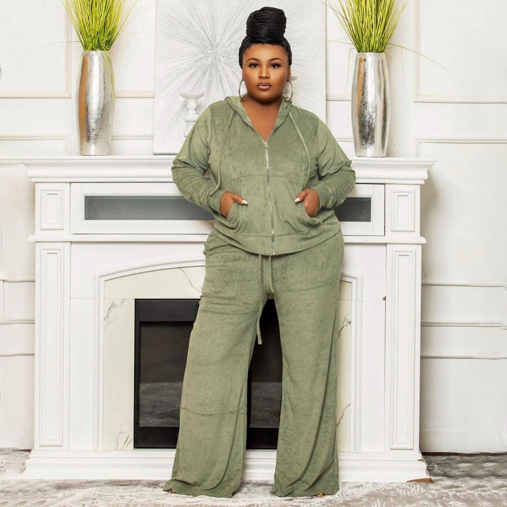 Women Clothing Autumn Winter Solid Color Casual High Waist Wide Leg Pants Two Piece Suit Women