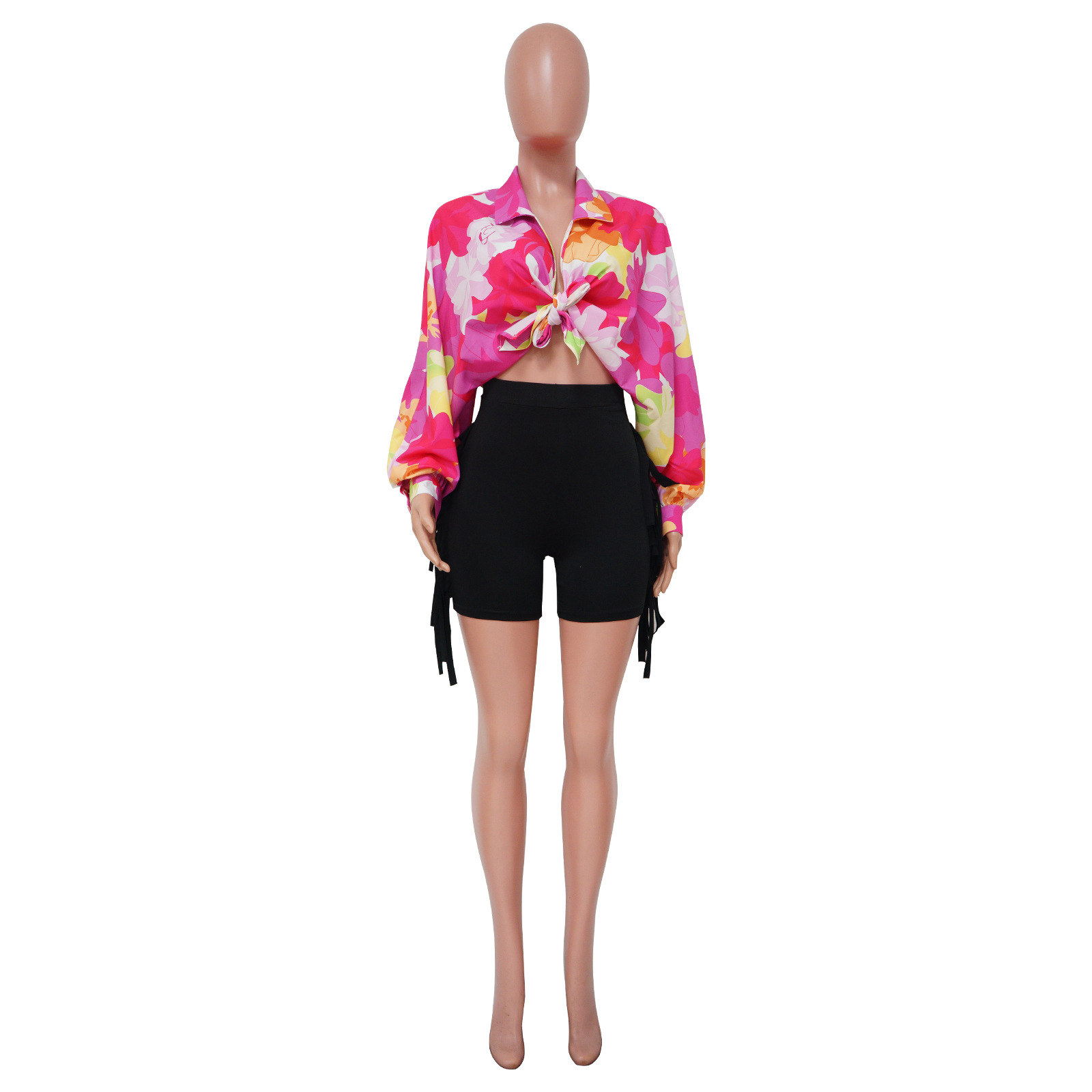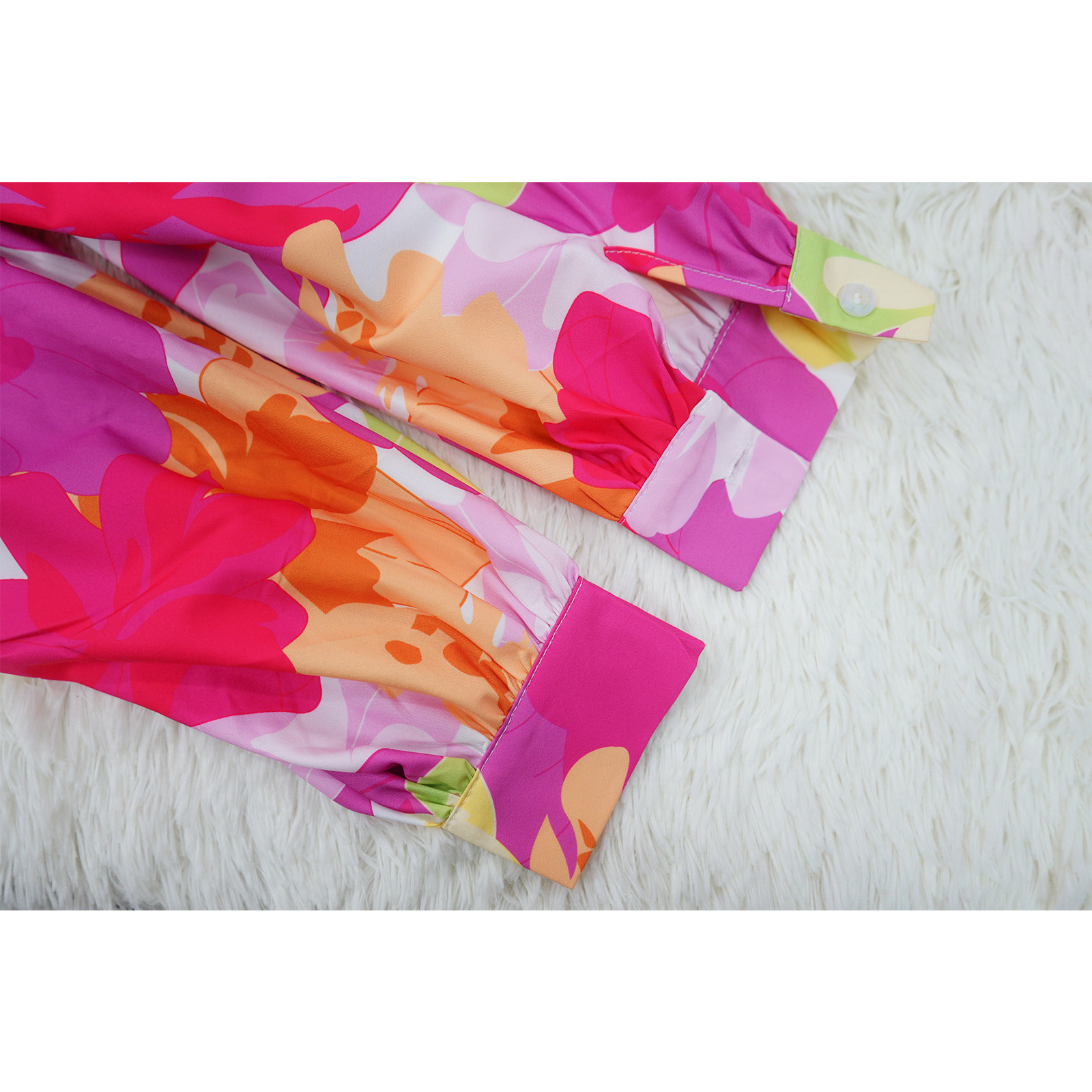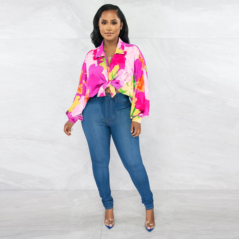 Women Clothing Batwing Sleeve Top Collared Print Shirt