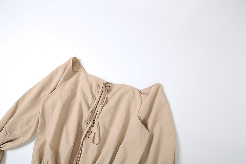 Women Clothing Fall Sexy Solid Color off Shoulder Backless Loose Lace up Bell Sleeve Dress