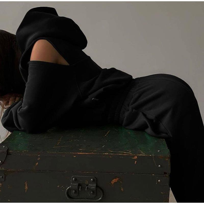 Women Clothing Fall Two Piece Solid Color Hooded Short Sweater Ankle Tied Trousers Set