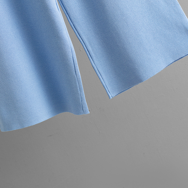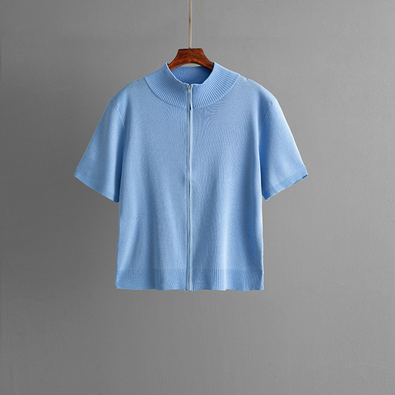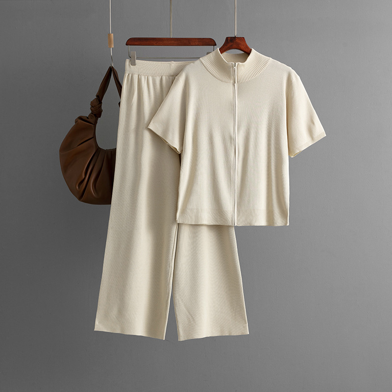 Women Clothing Half Turtleneck Solid Color Short Sleeve Zipper Wide Leg Pants Two Piece Set
