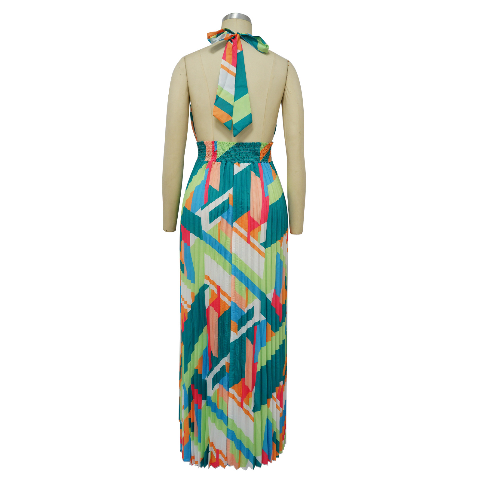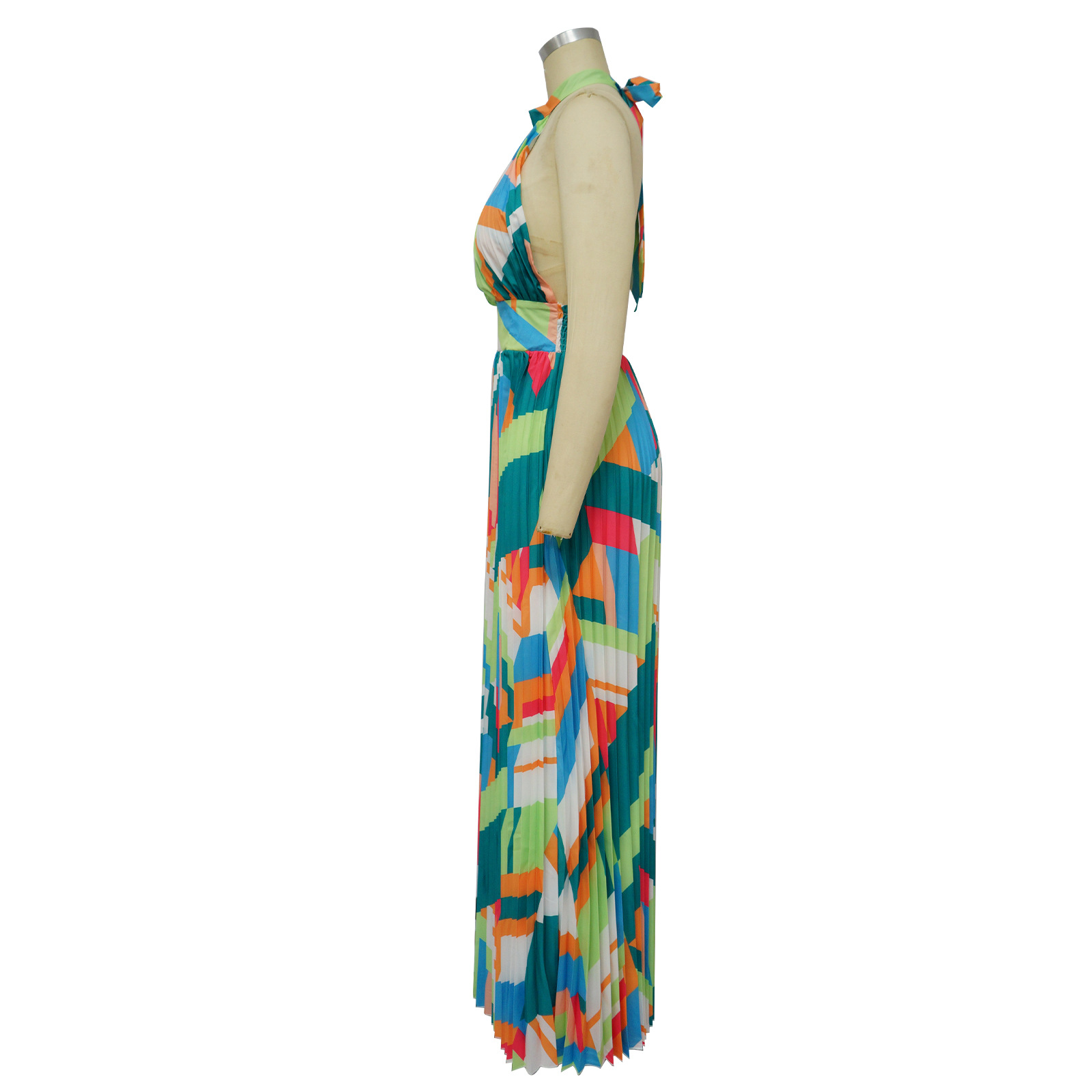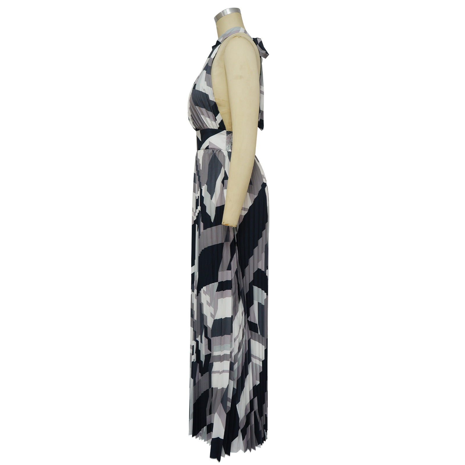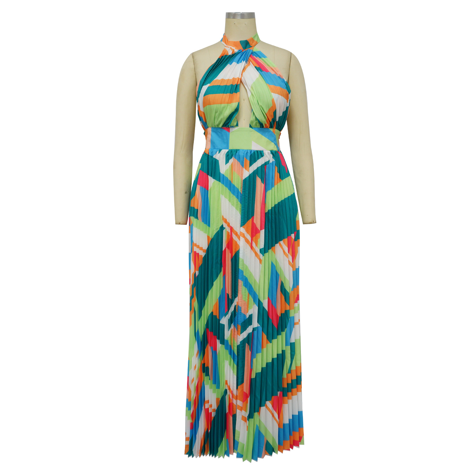 Women Clothing Halter Backless Pleated Large Swing Dress Printed Sleeveless Dress