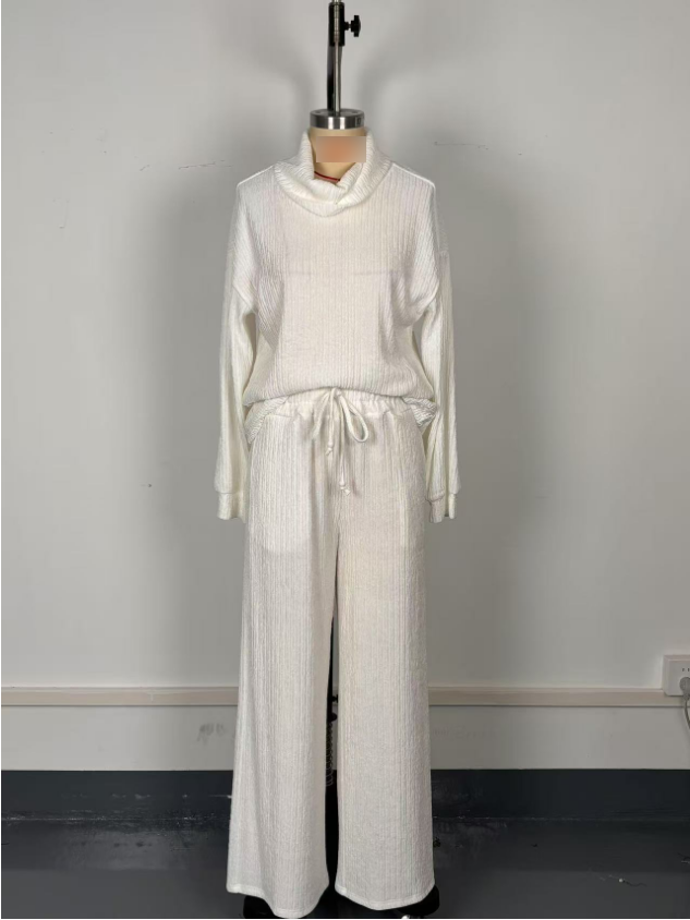 Women Clothing Heap Collar Long Sleeves Top Wide Leg Pants Two Piece Sets Autumn Winter