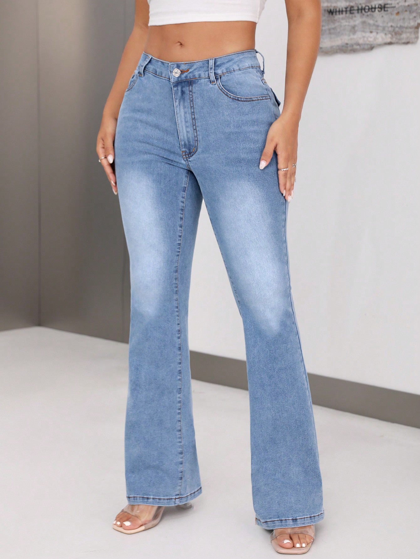 Women Clothing High Waist Casual Straight Leg Slimming High Elastic Jeans