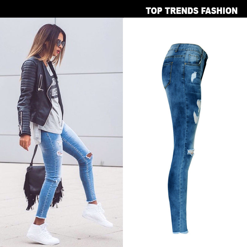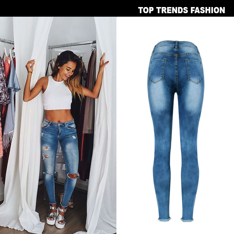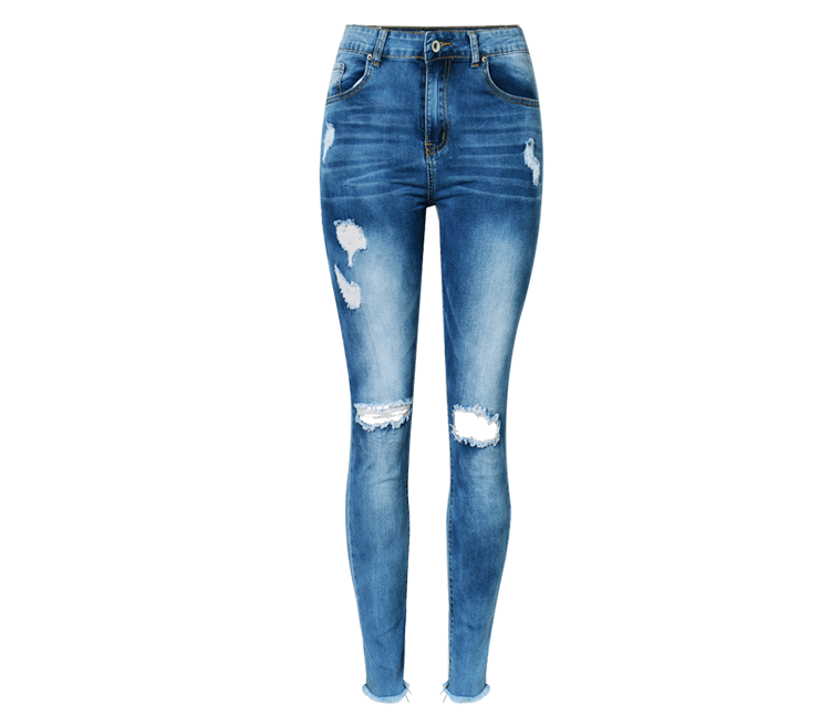 Women Clothing High Waist Slim Stretch Denim (ankle-length Pants) Washed Irregular Asymmetric Ripped Tassel