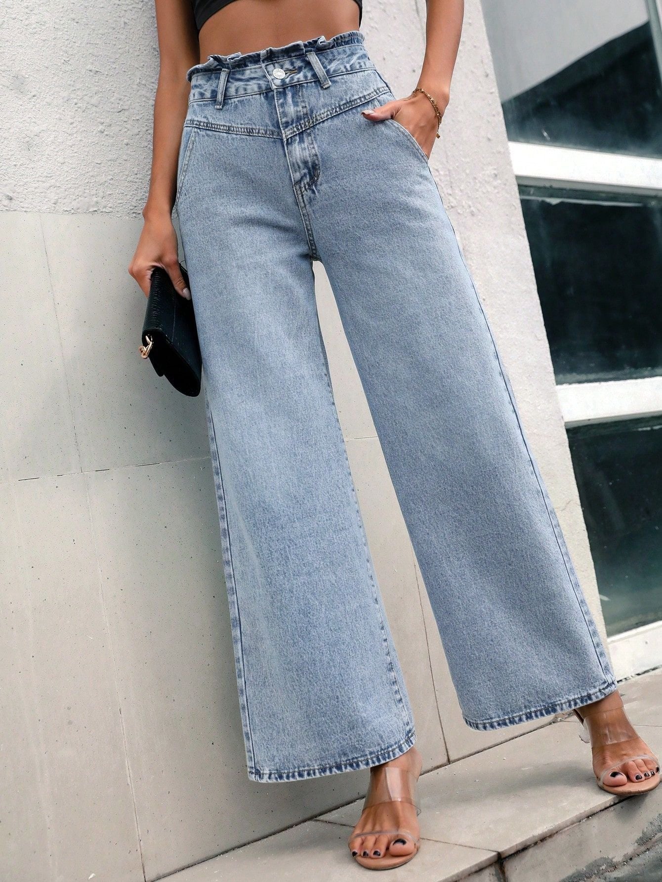 Women Clothing High Waist Straight Slimming Loose Jeans