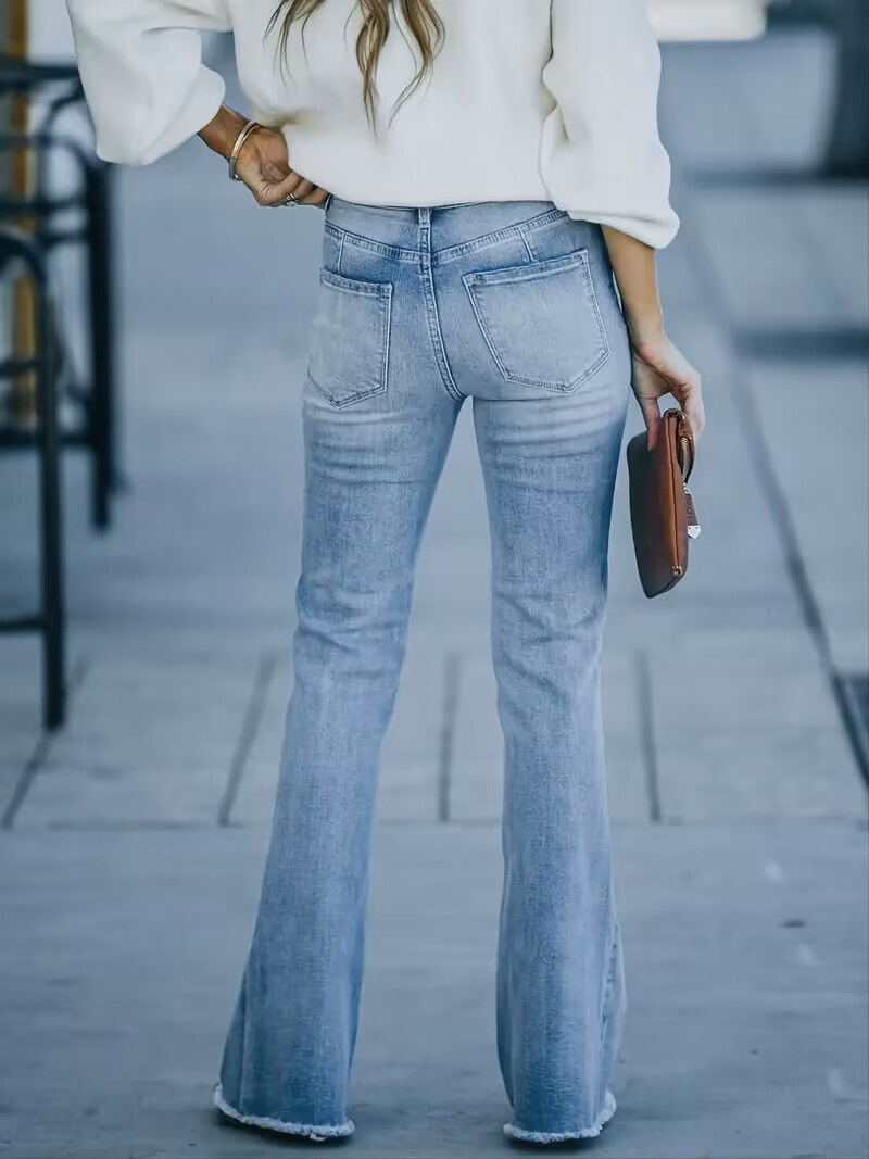 Women Clothing Jeans Bootleg Pants High Waist Slim Blue Jeans Women Trend