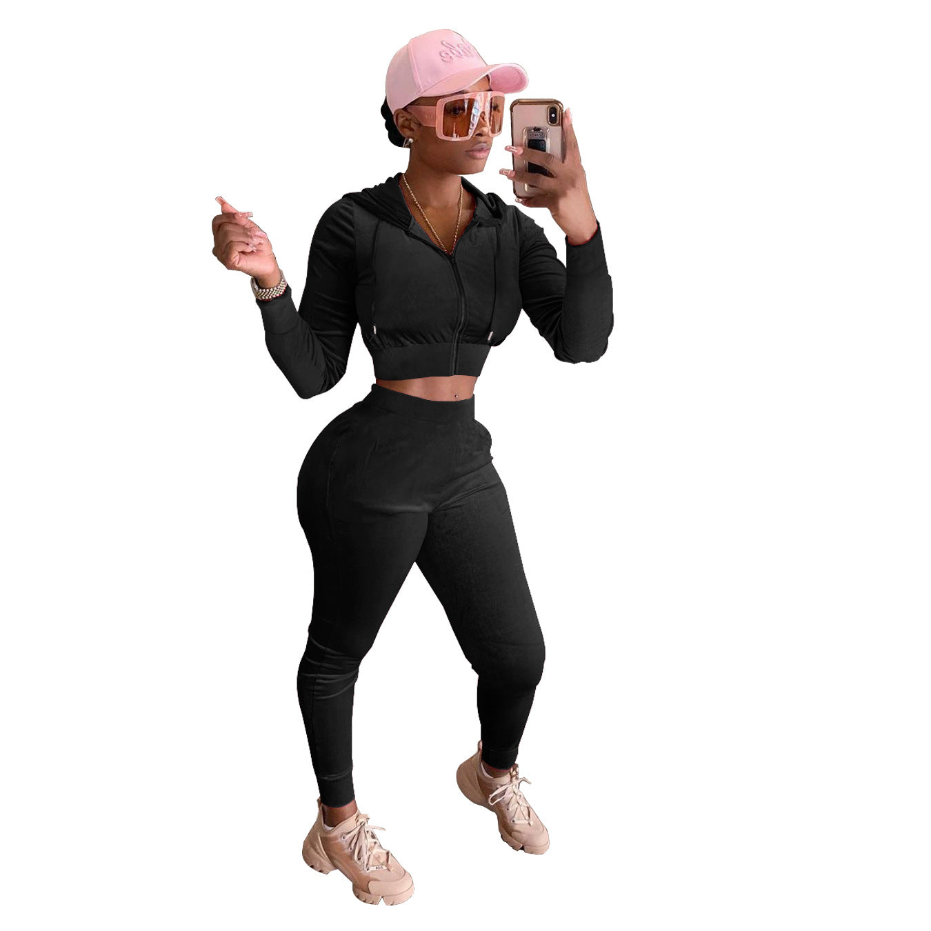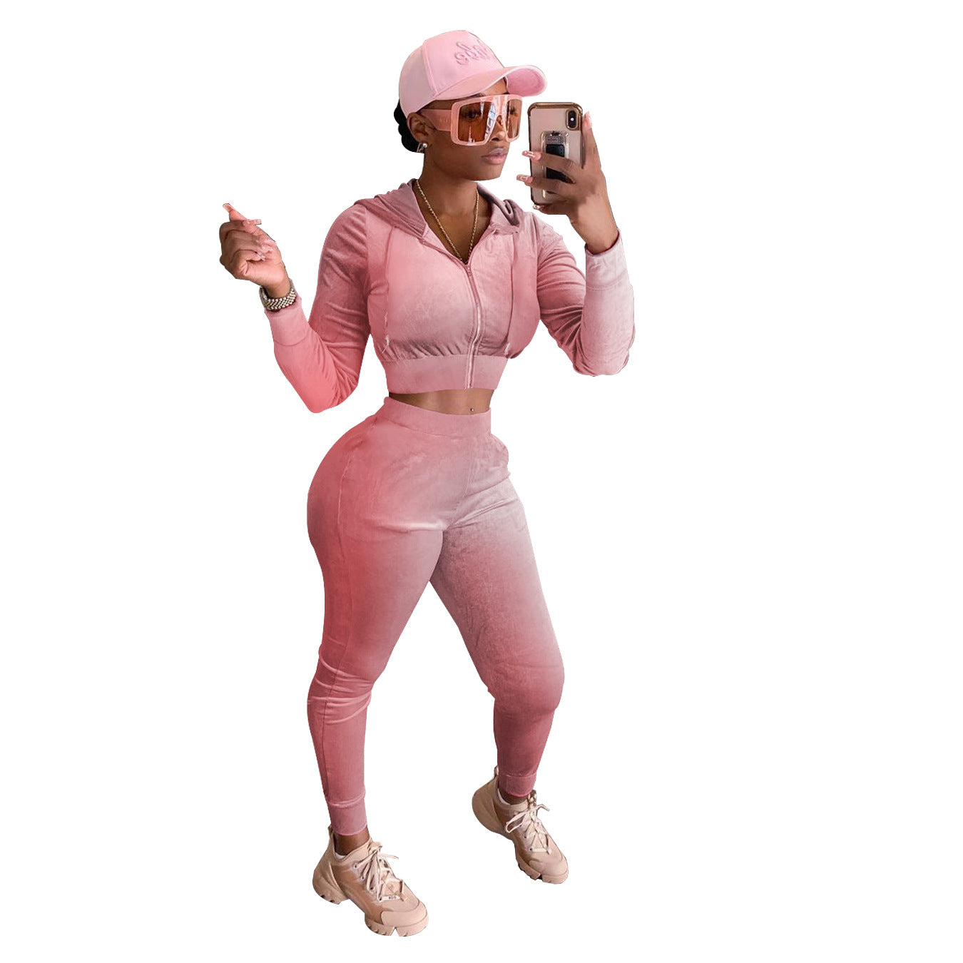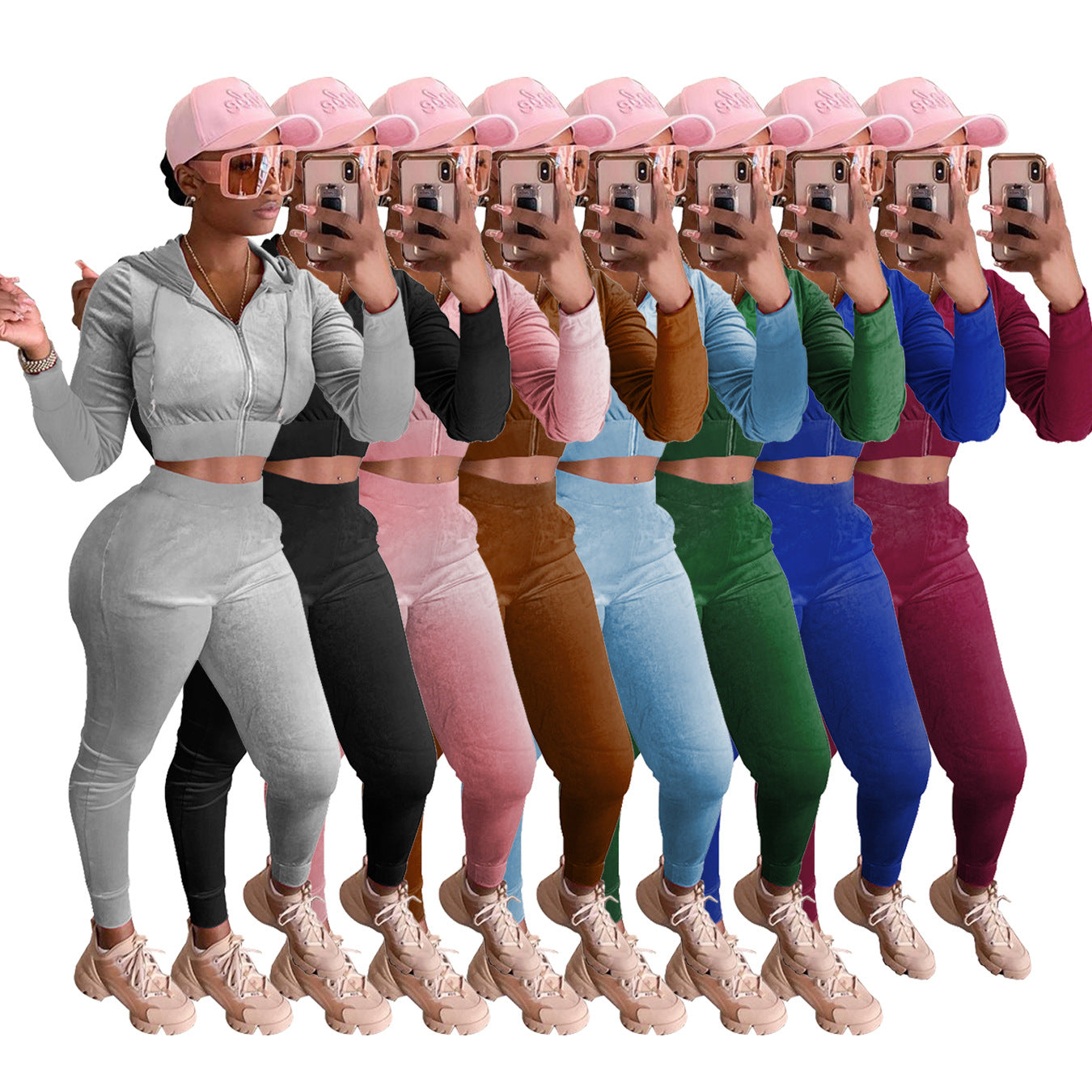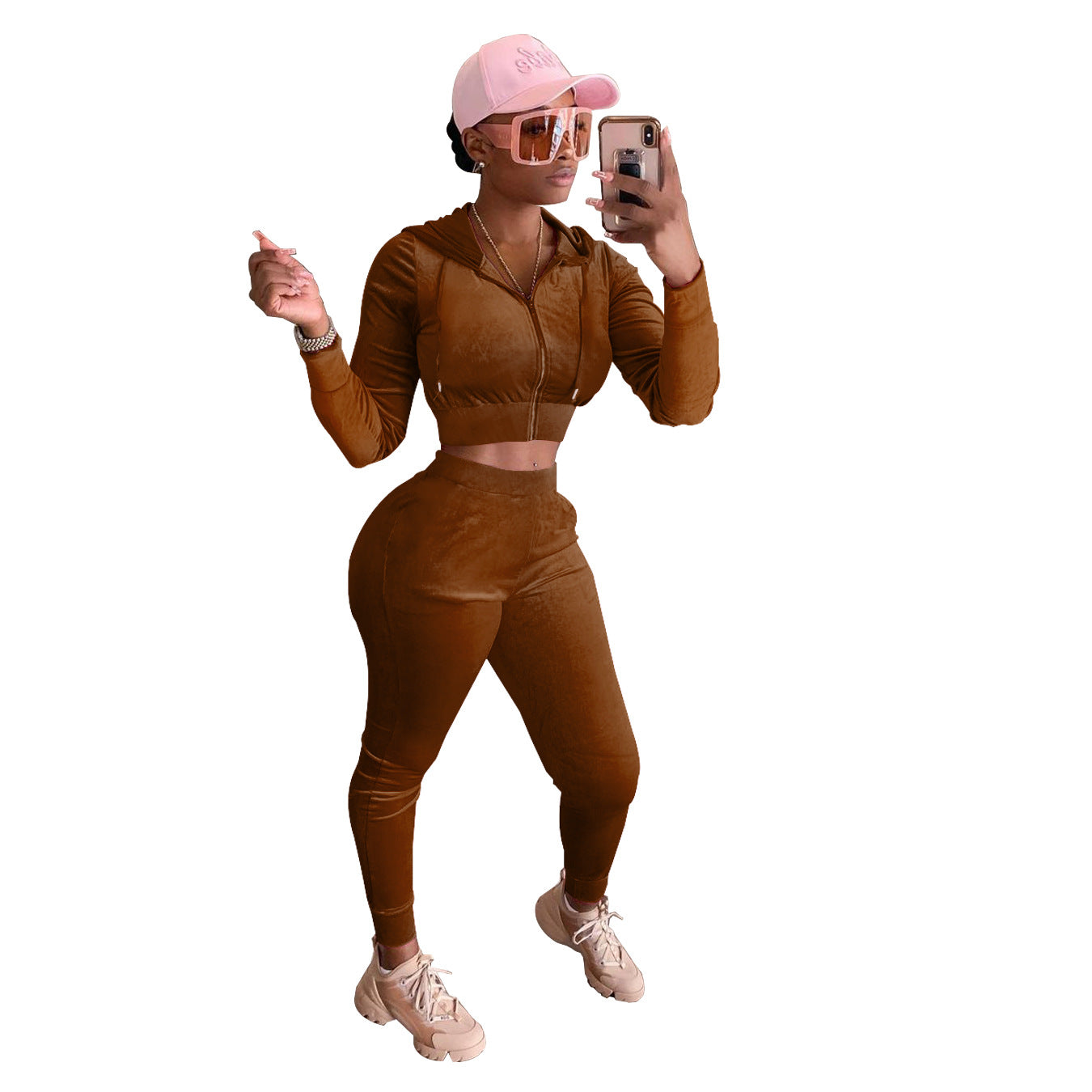 Women Clothing Korean Velvet Hoodie Two-Piece Set Women