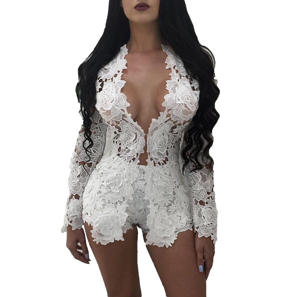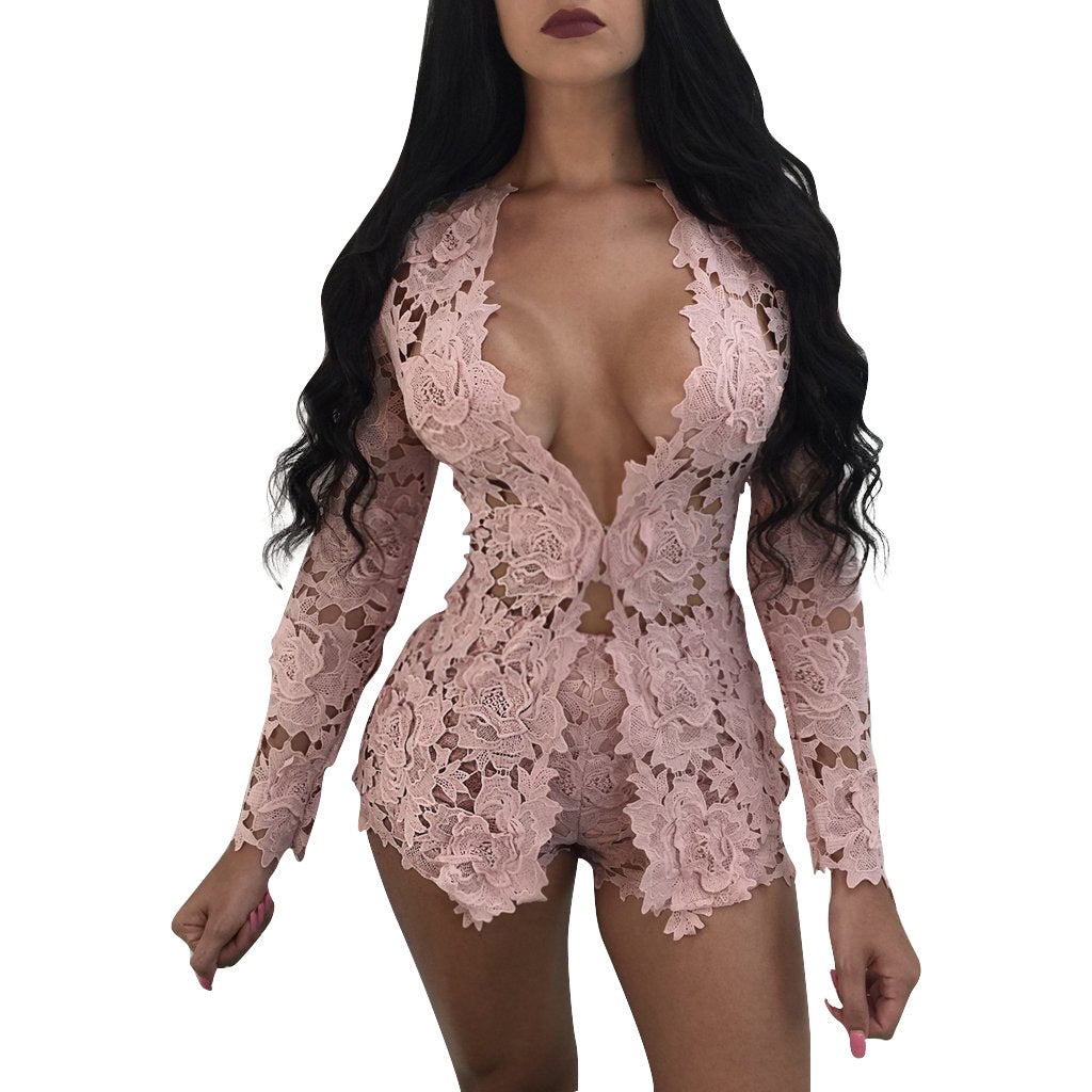 Women Clothing Lace Lace Long-Sleeved Blouse Pants Nightclub