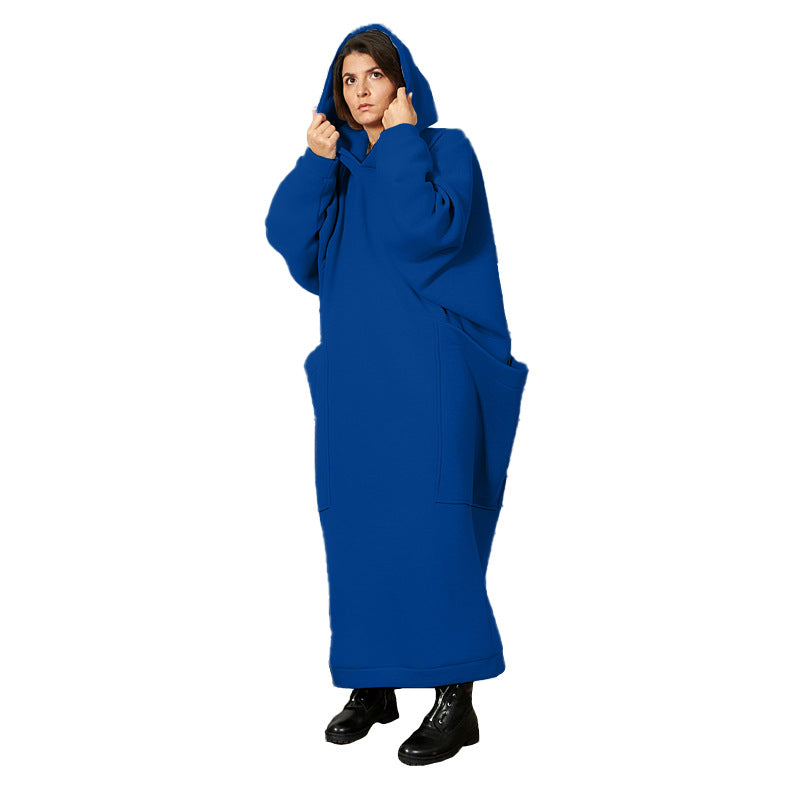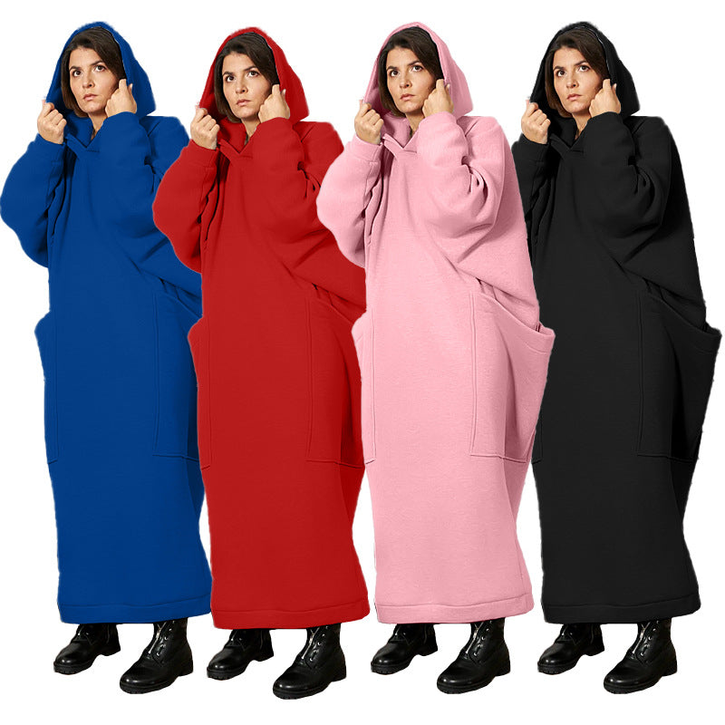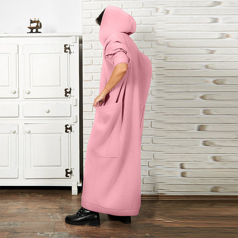 Women Clothing Lengthened Sweater Autumn Winter Pocket plus Size Hooded Sweater Dress