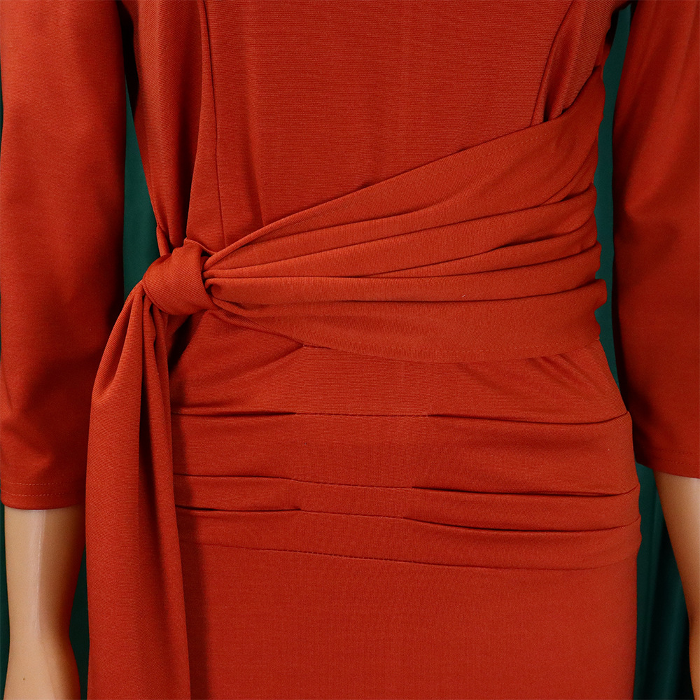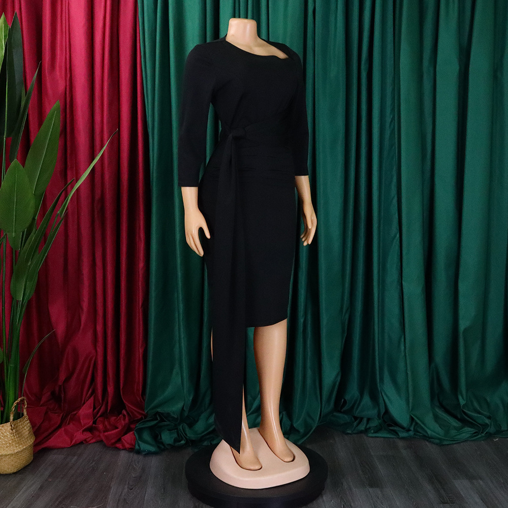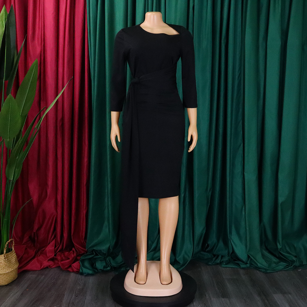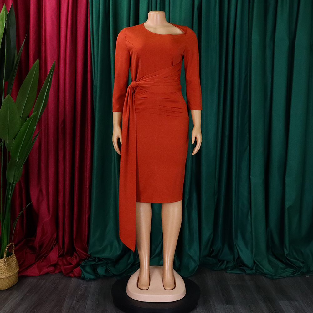 Women Clothing Pleated Strap Solid Color Sheath Business Office plus Size Dress