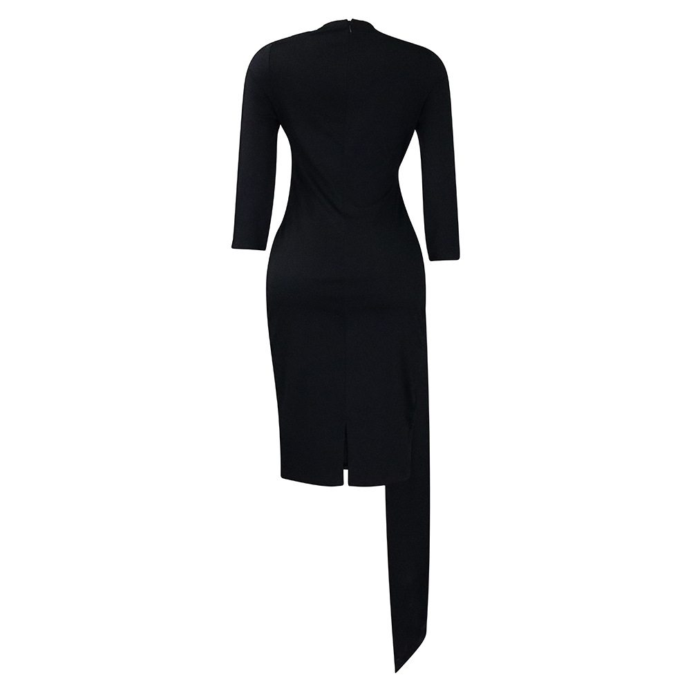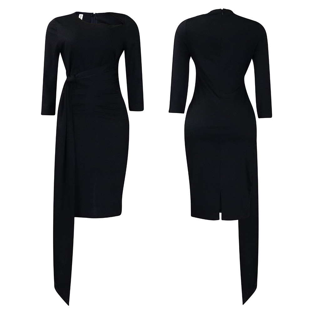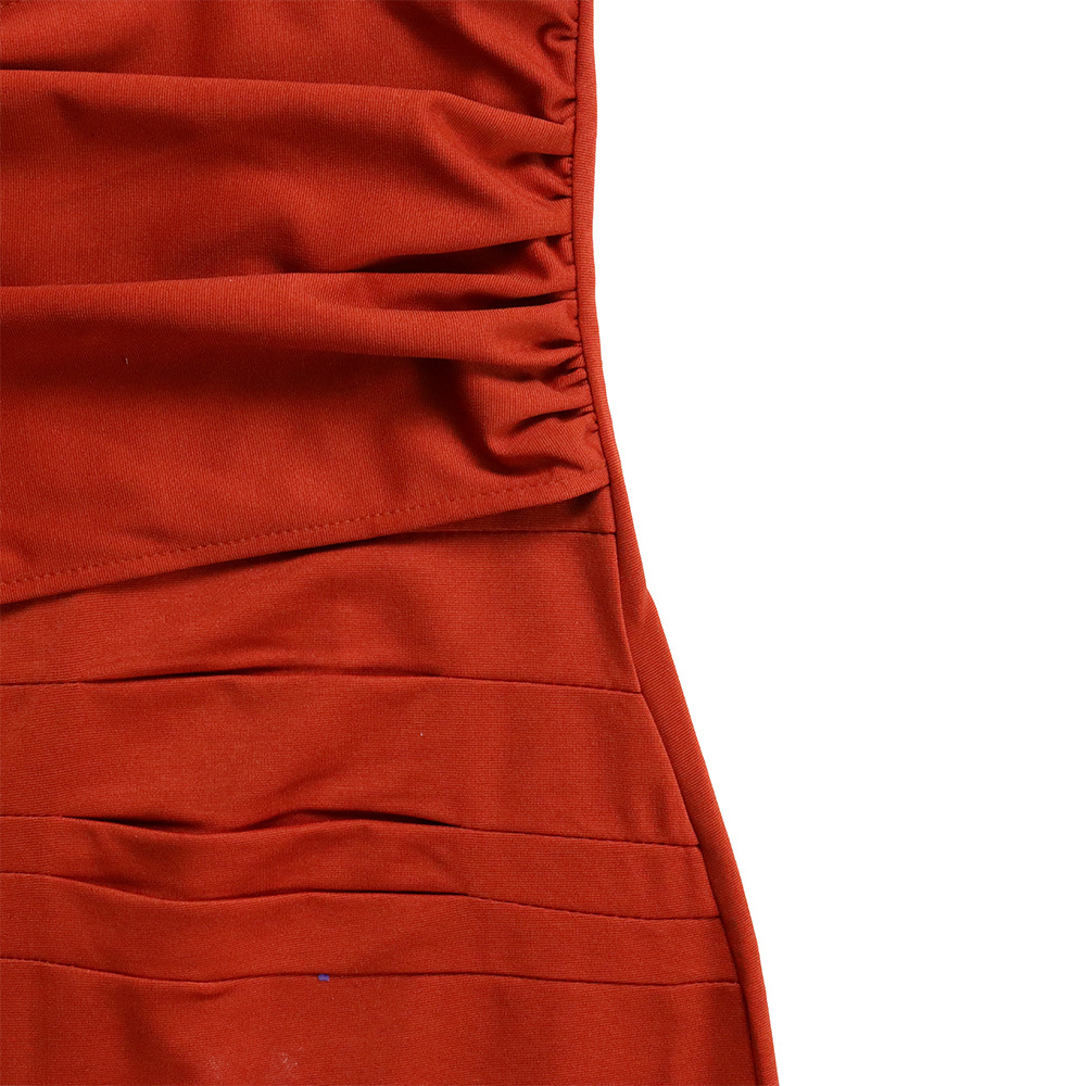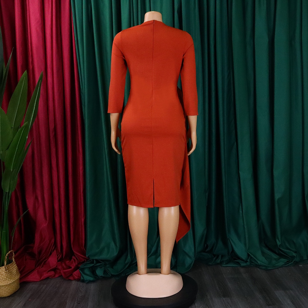 Women Clothing Pleated Strap Solid Color Sheath Business Office plus Size Dress