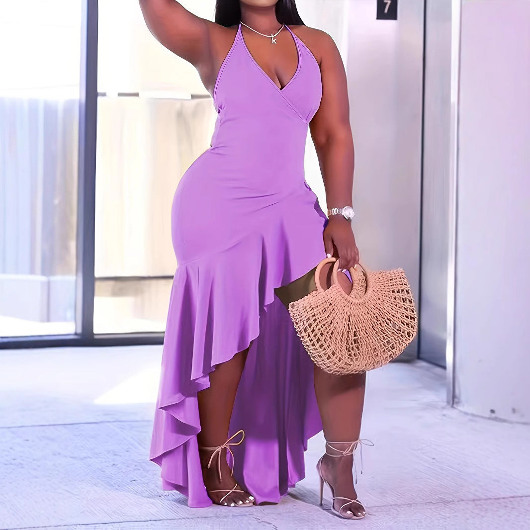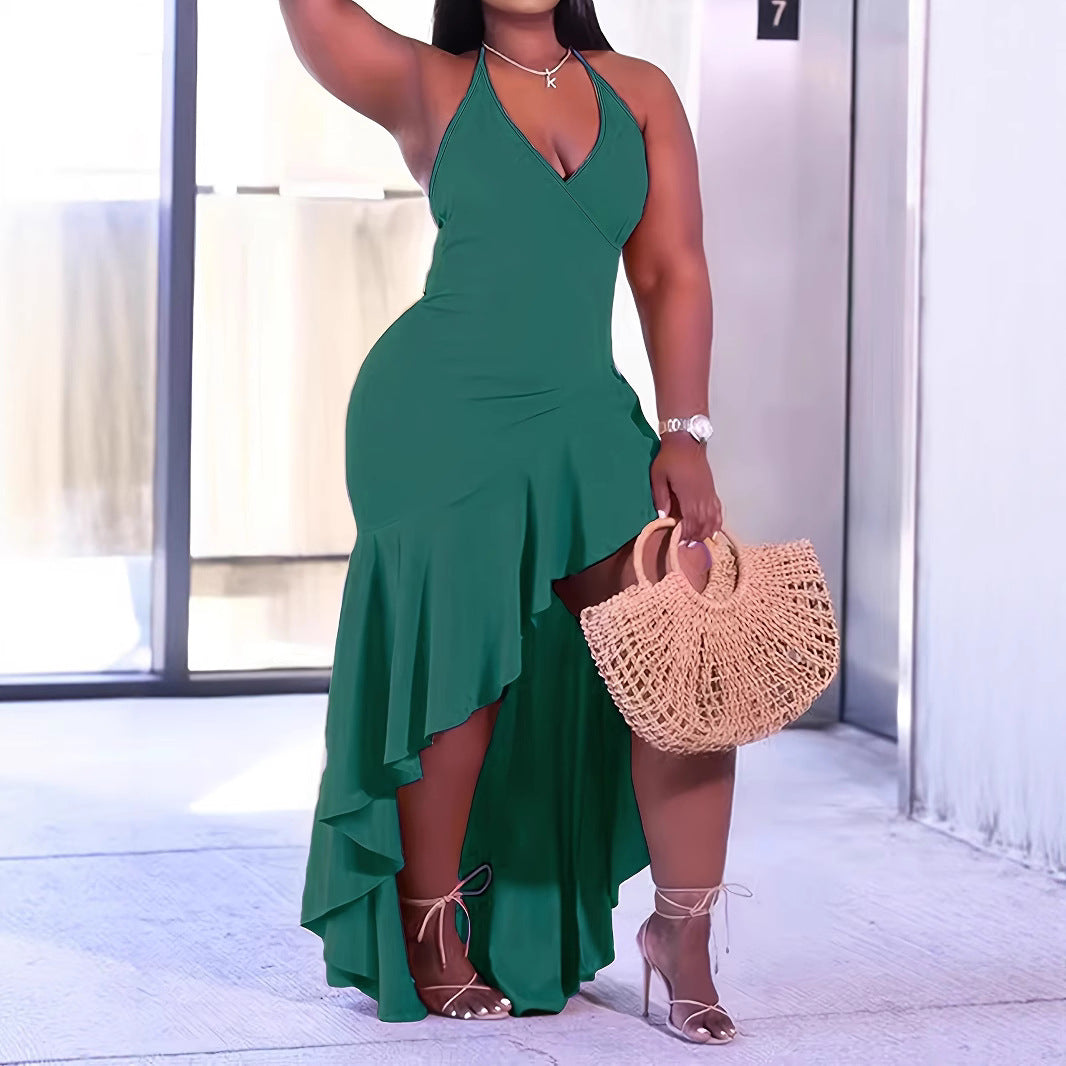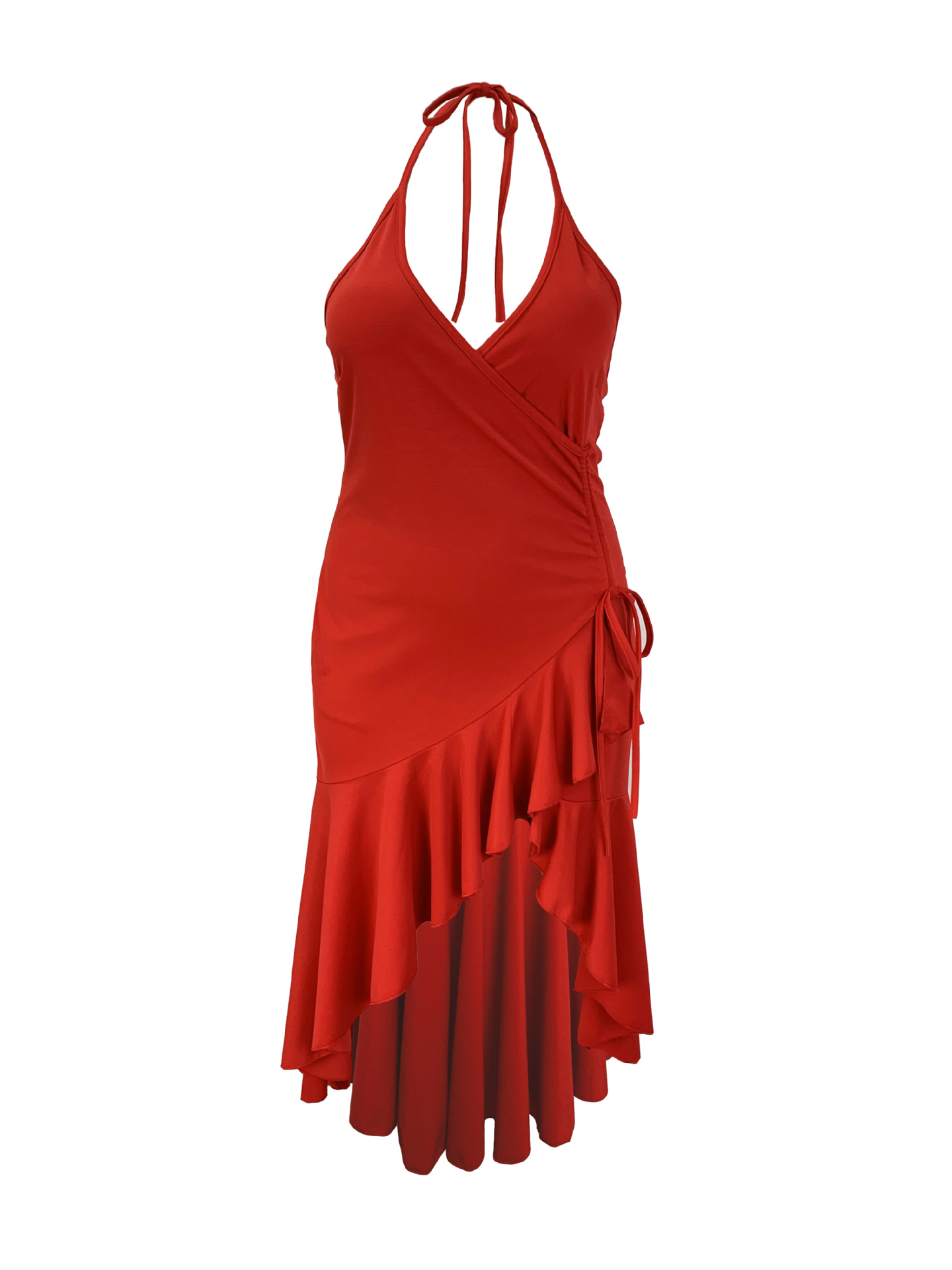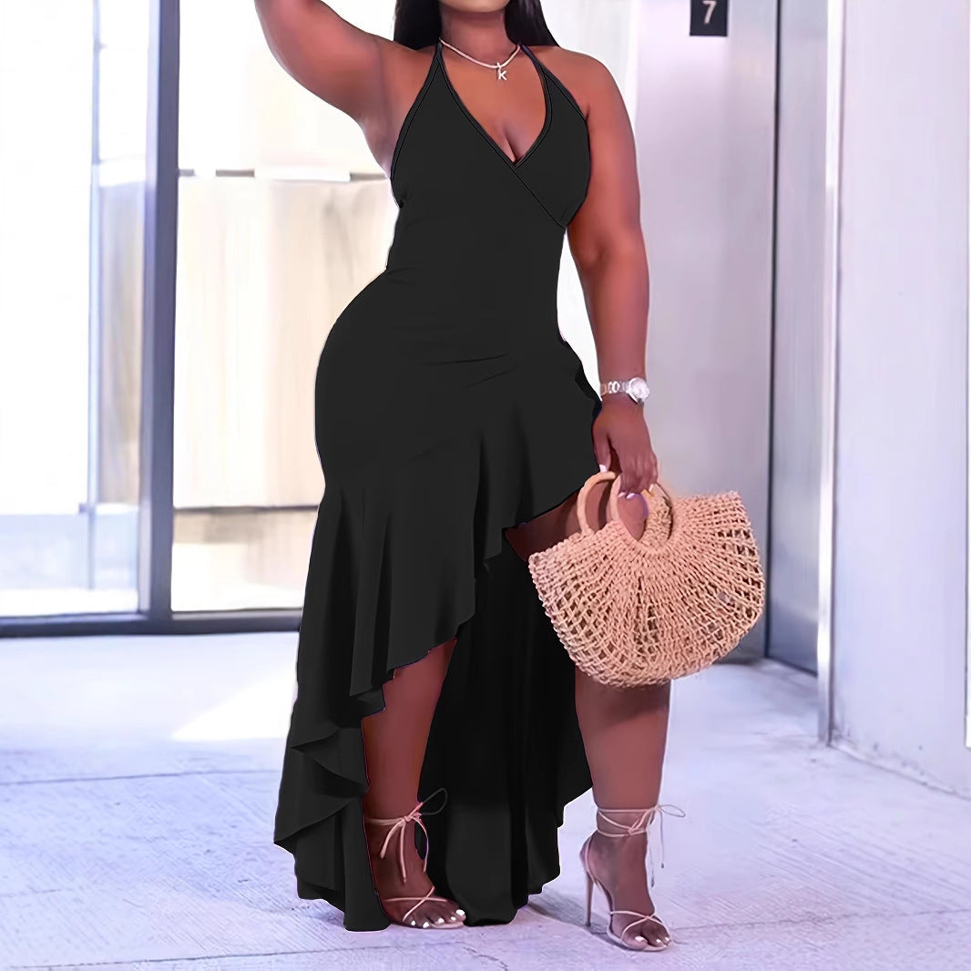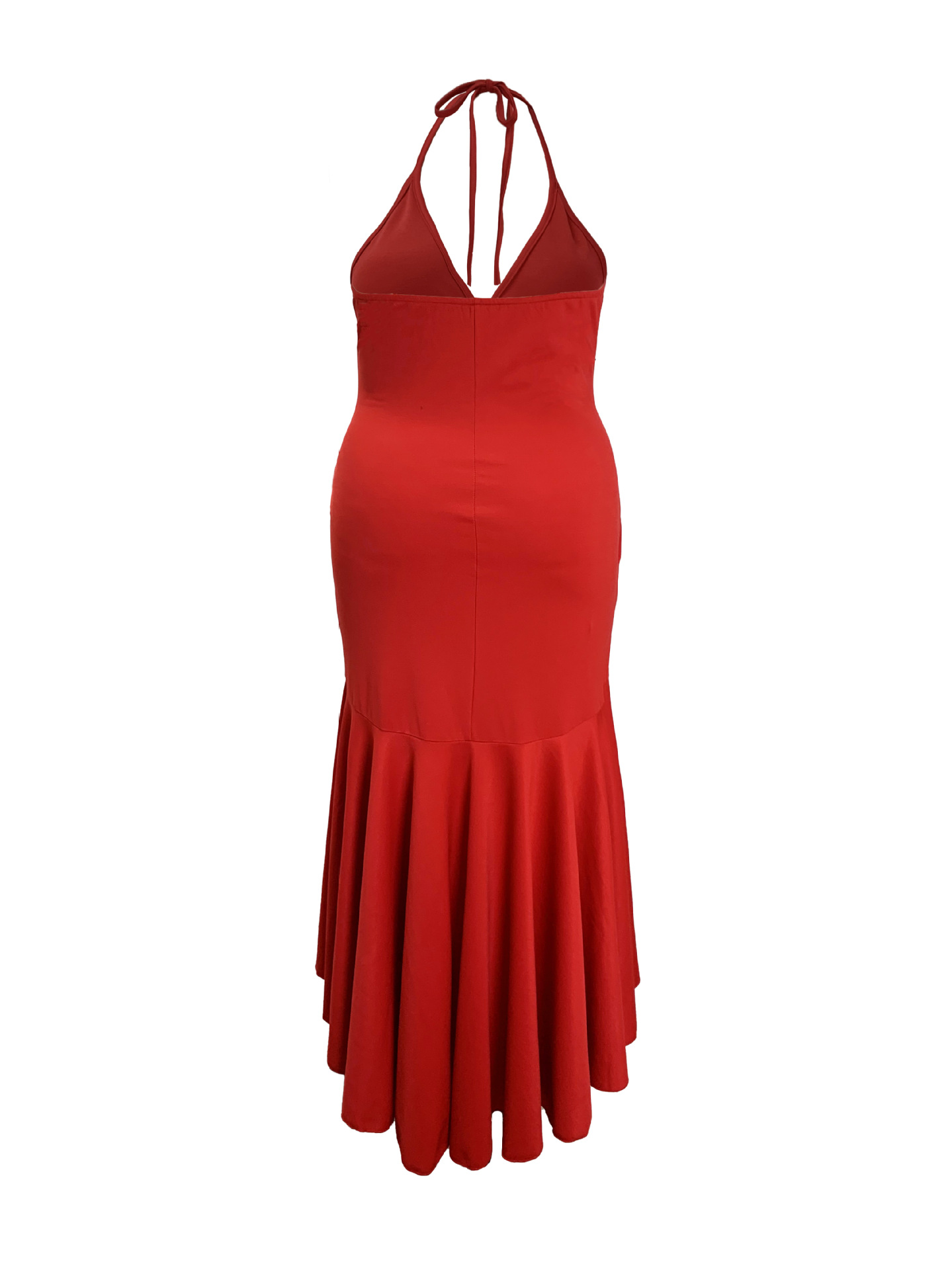 Women Clothing plus Size Sexy Design Bow Cropped Outfit Solid Color Dress