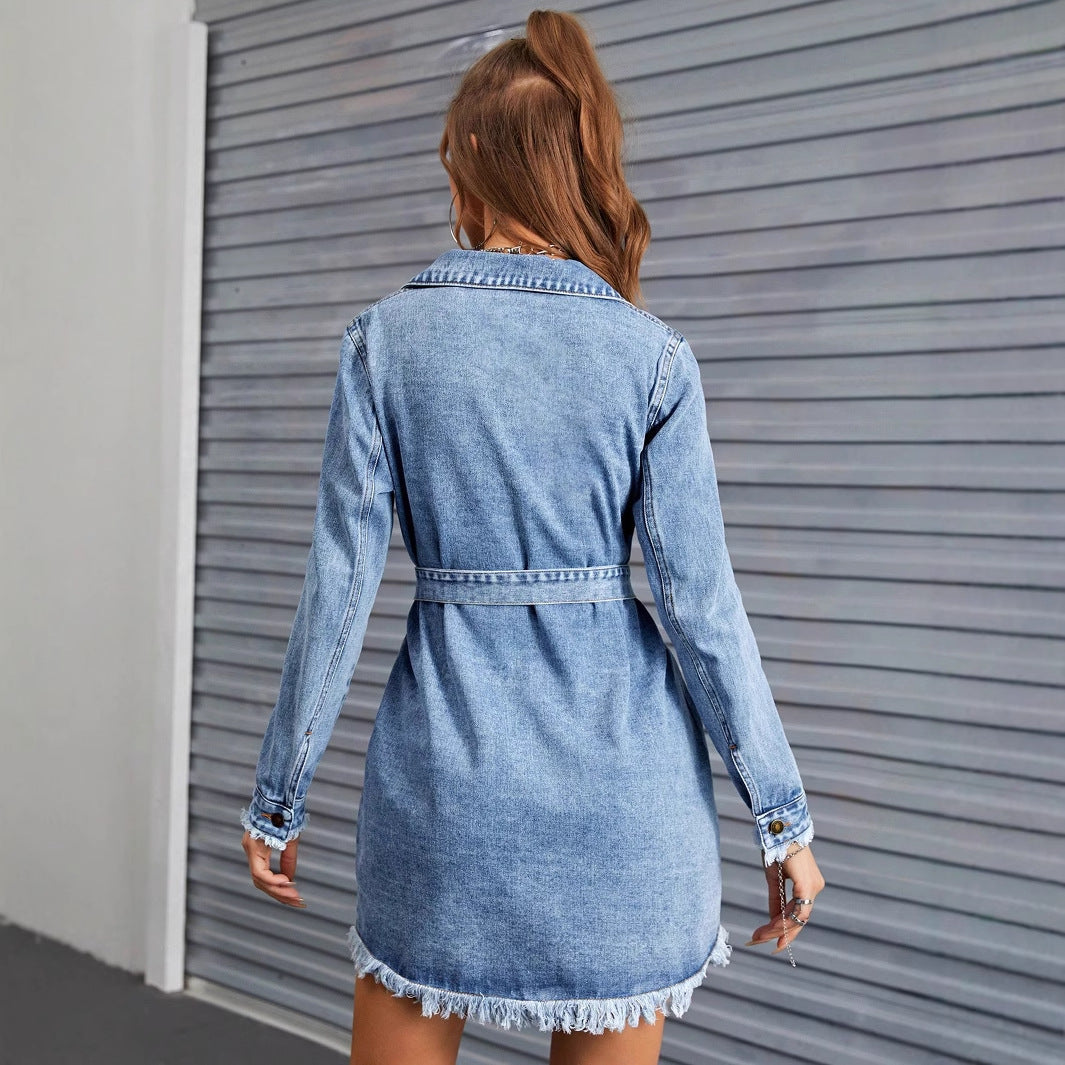Women Clothing Retro Slimming Long Sleeve Denim Dress