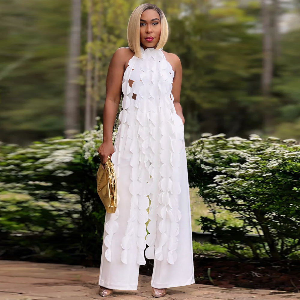 Women Clothing Sexy Backless Lace up Long Shirt Wide Leg Pants Suit
