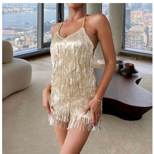 Women Clothing Sexy Tassel Sequined Camouflage Dress
