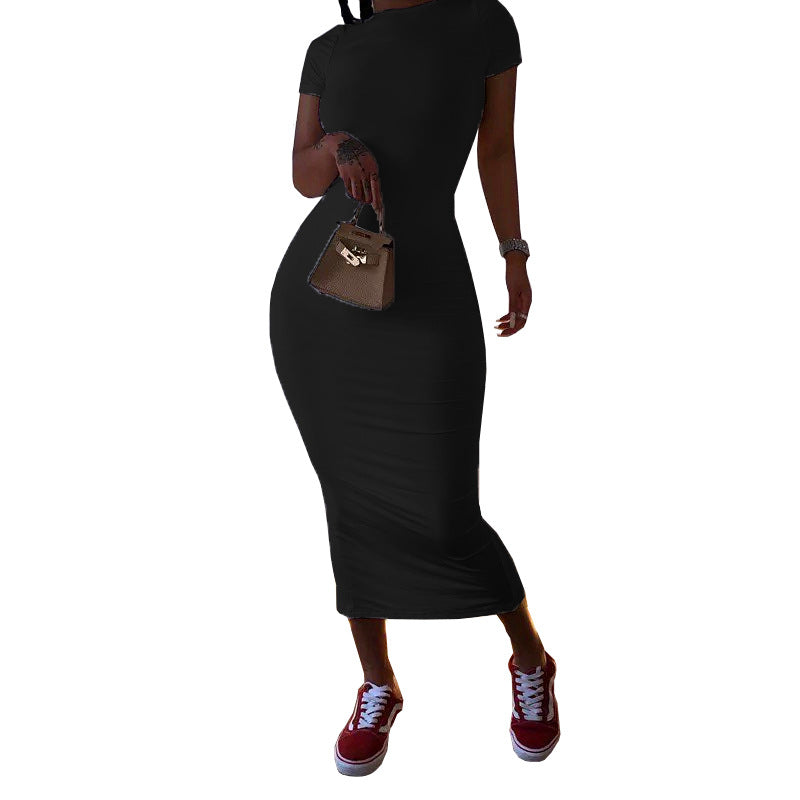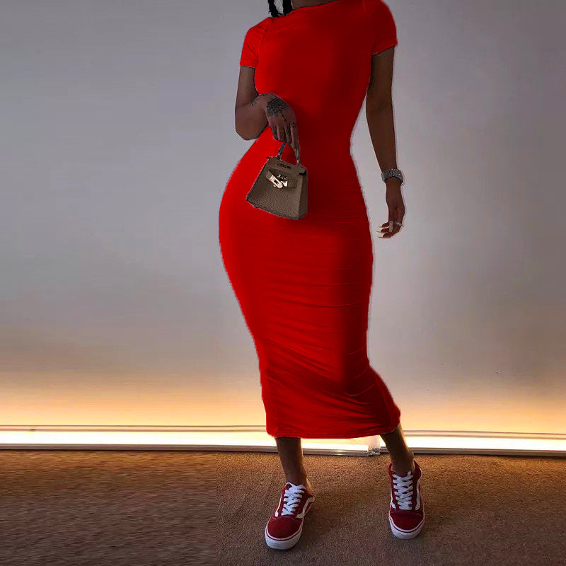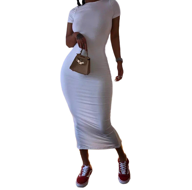 Women Clothing Solid Color Dress Vacation Casual Dress Short Sleeve T shirt Sexy