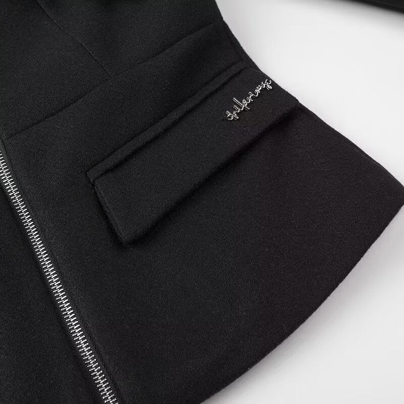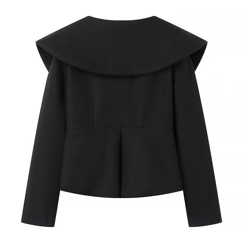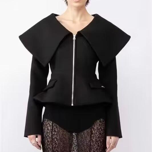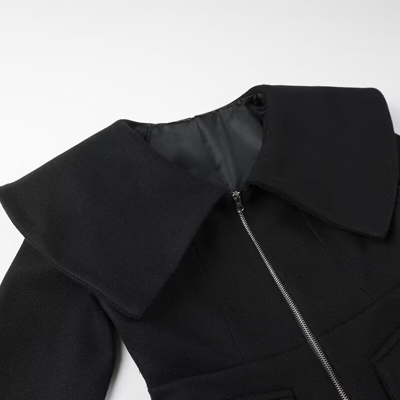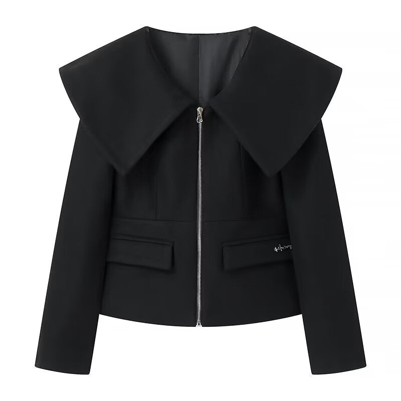 Women Clothing Spring Large Collared Zipper V Neck Short Sweater