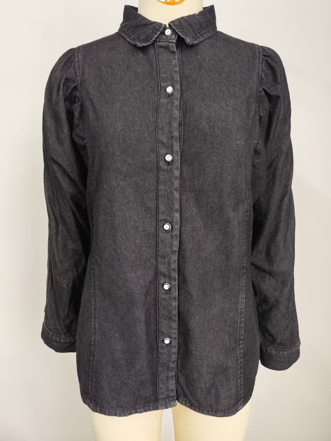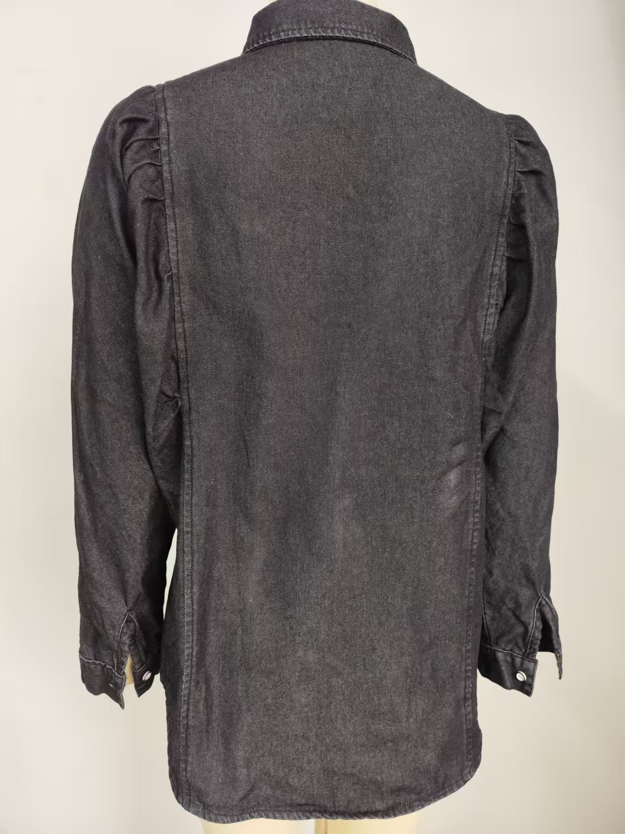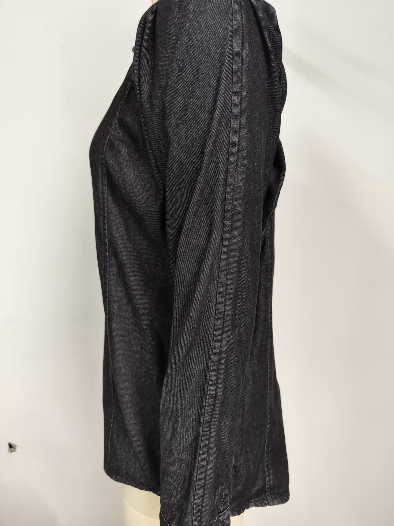 Women Clothing Spring Summer Washing Shrug Denim Long Sleeve Shirt Top