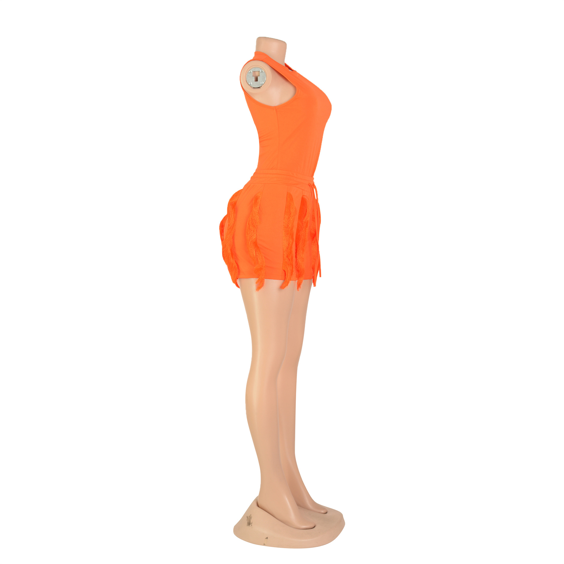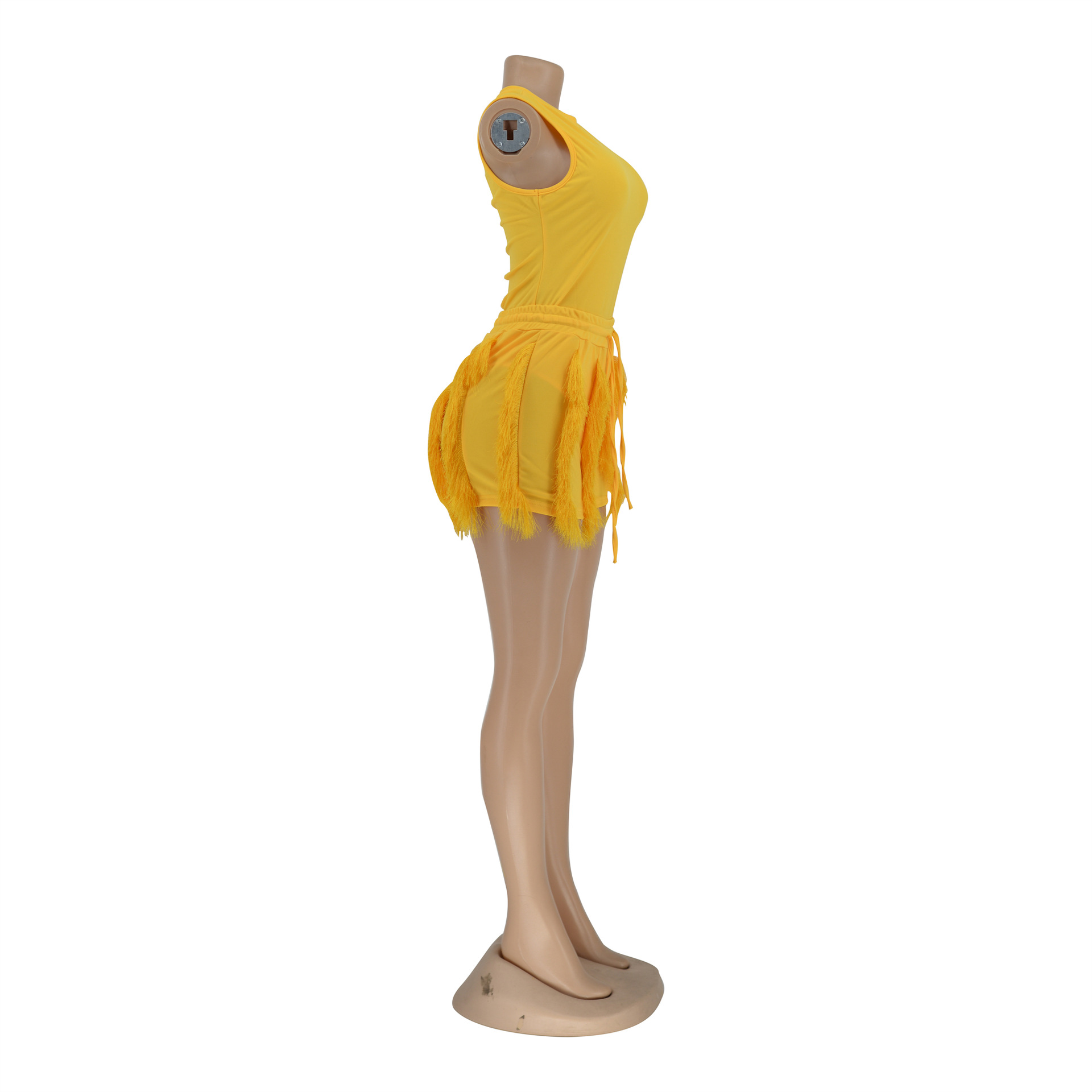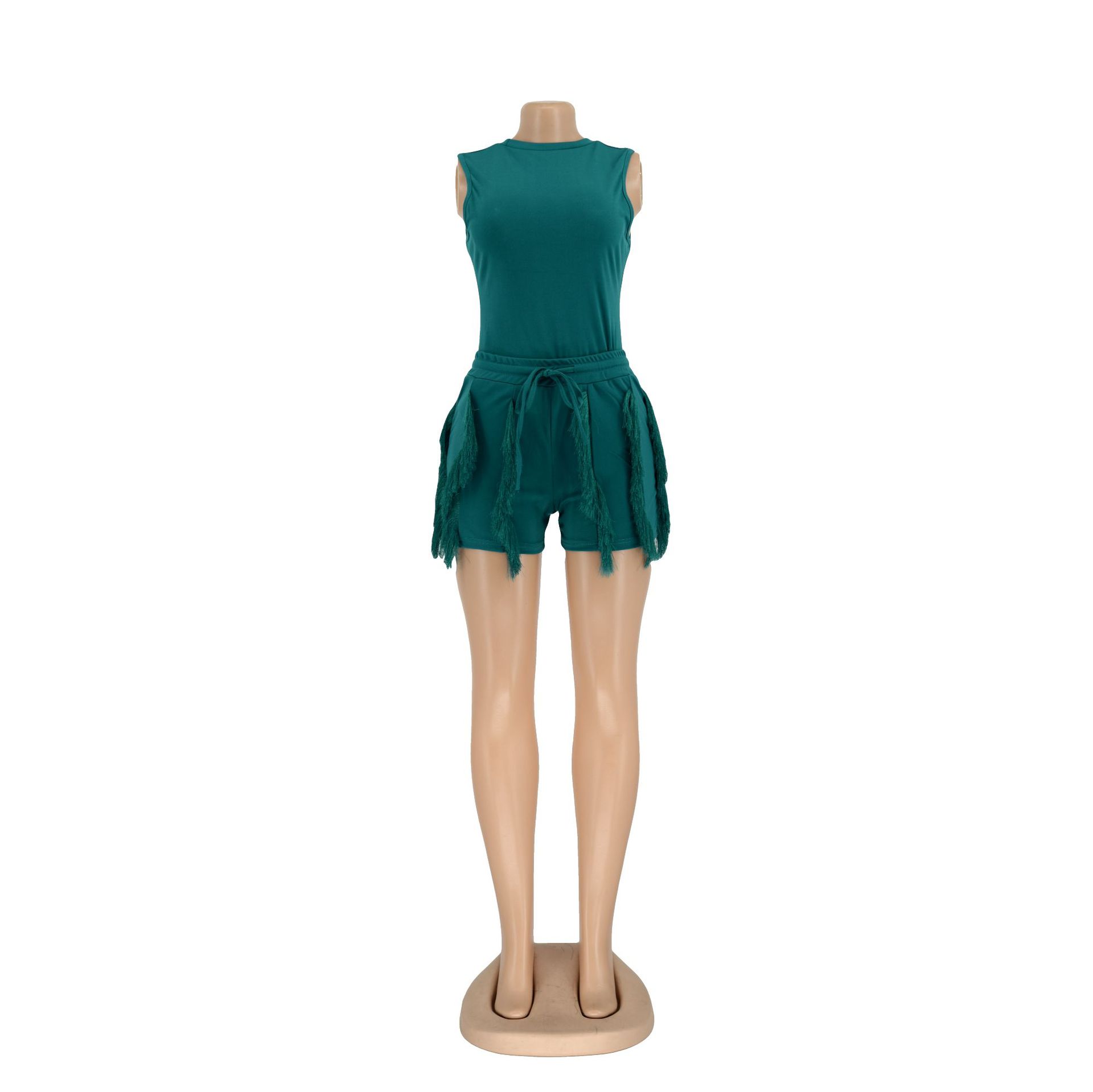 Women Clothing Suit Tassel Lace Sleeveless Shorts Jumpsuit Two Piece Set Solid Color