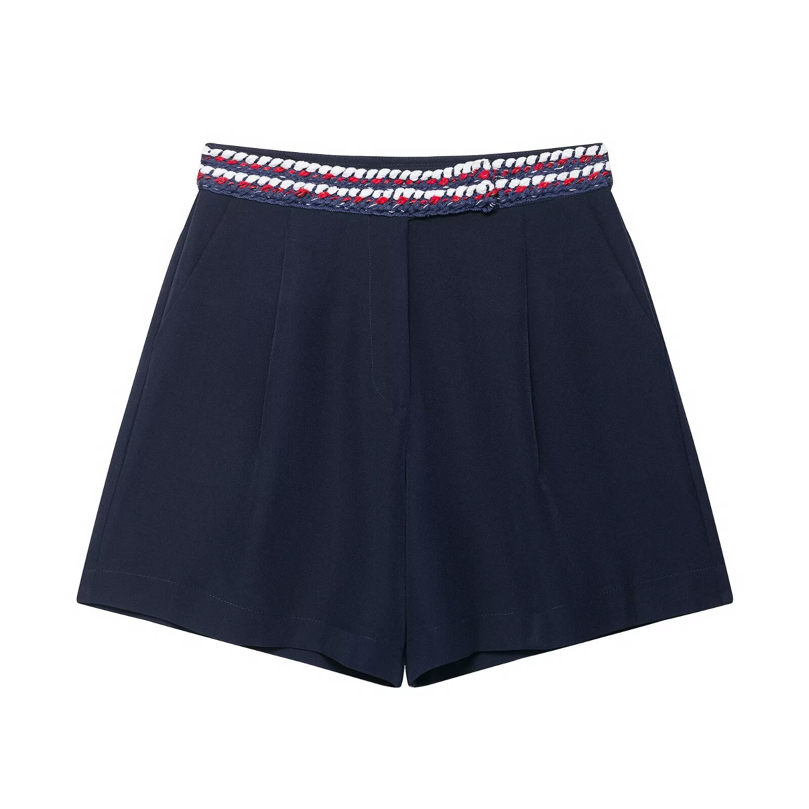 Women Clothing Summer Fancy Trim Vest Jacket Casual Shorts Two Piece Sets