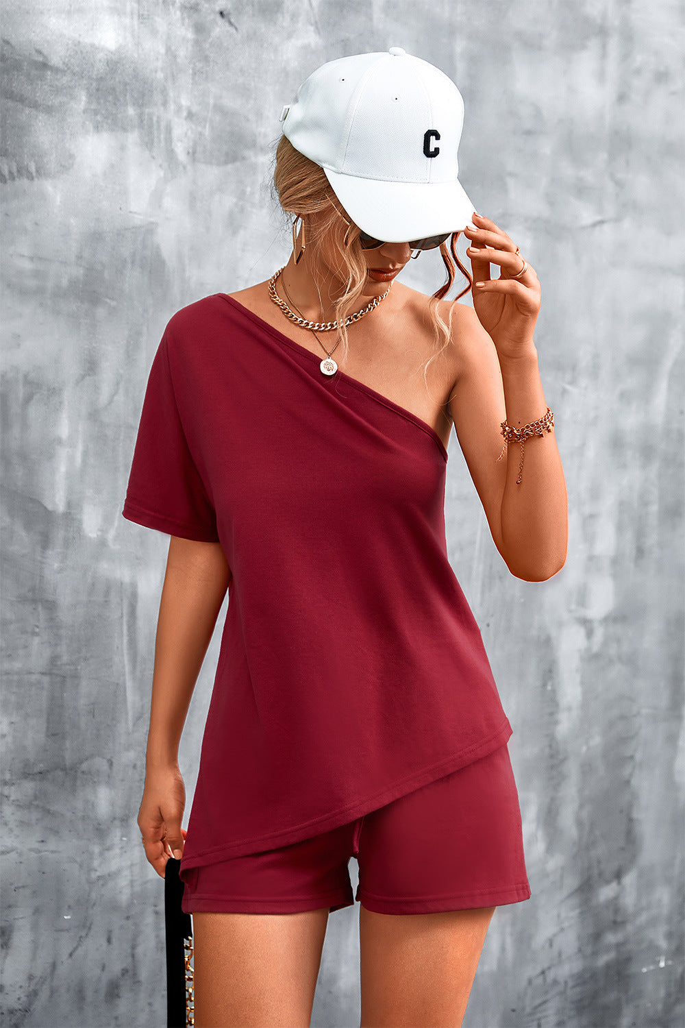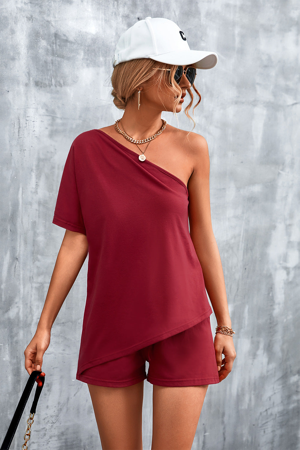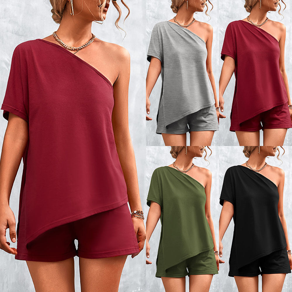 Women Clothing Summer Sexy Oblique Shoulder Irregular Asymmetric Shorts Suit