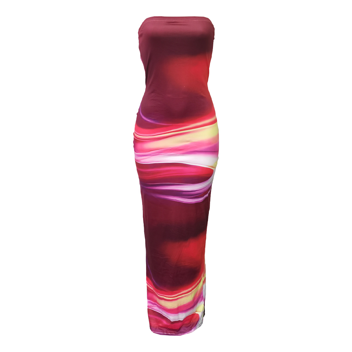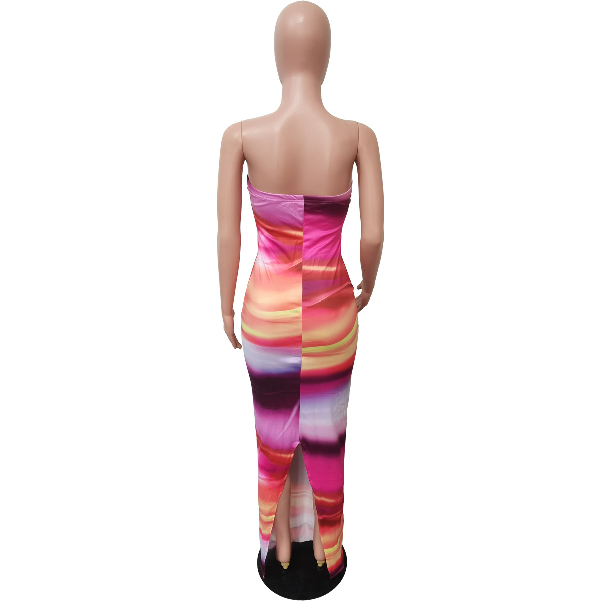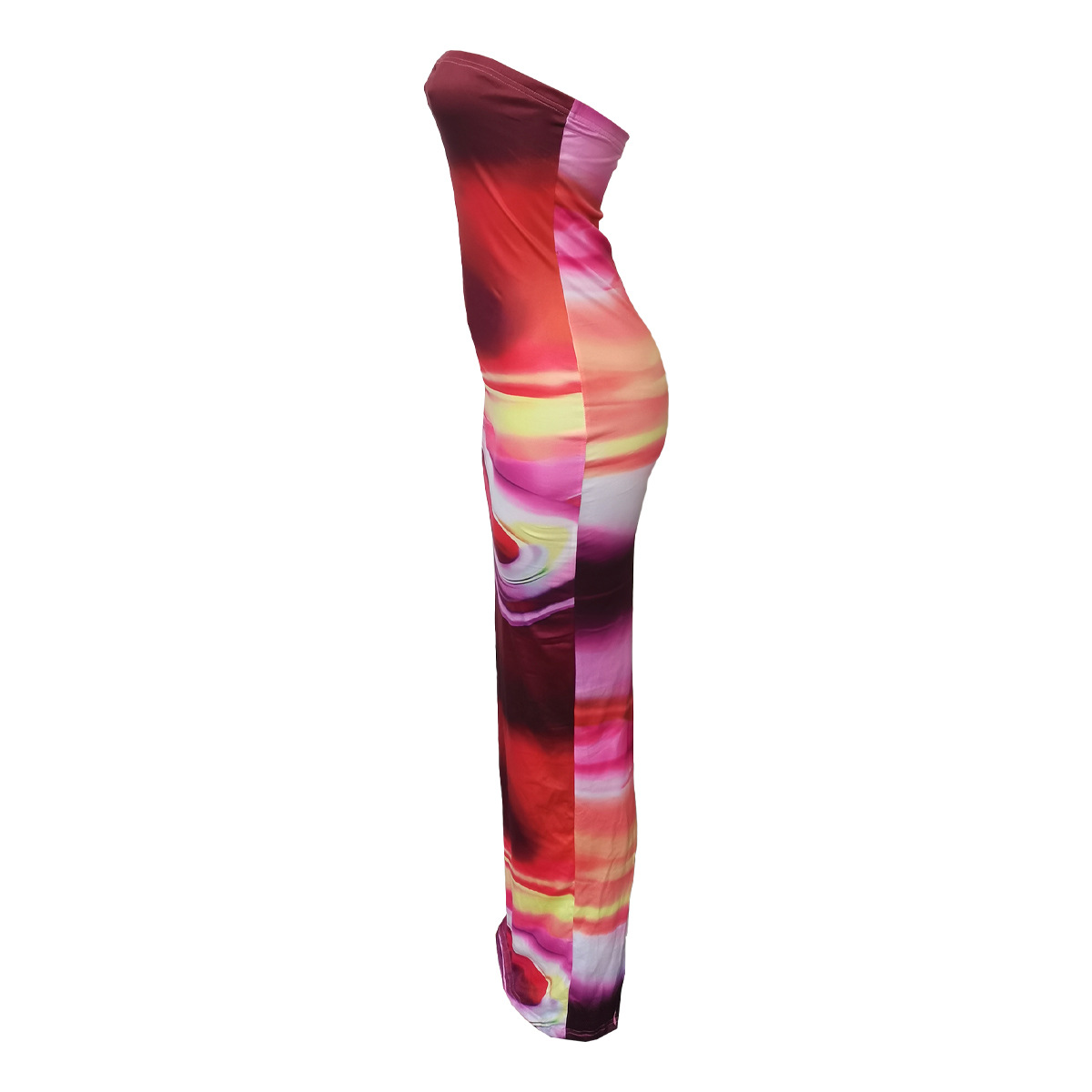 Women Clothing Summer Sexy Off The Shoulder Tube Top Positioning Floral Print Slit Dress