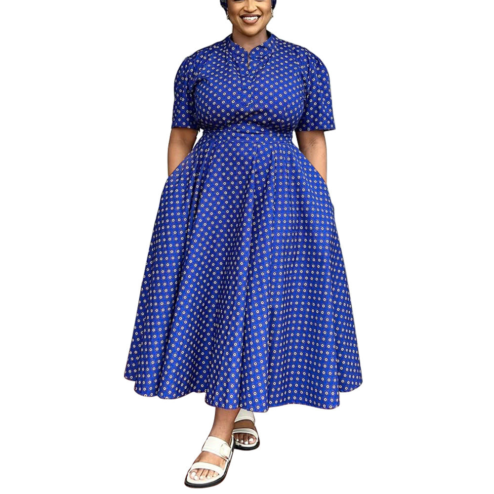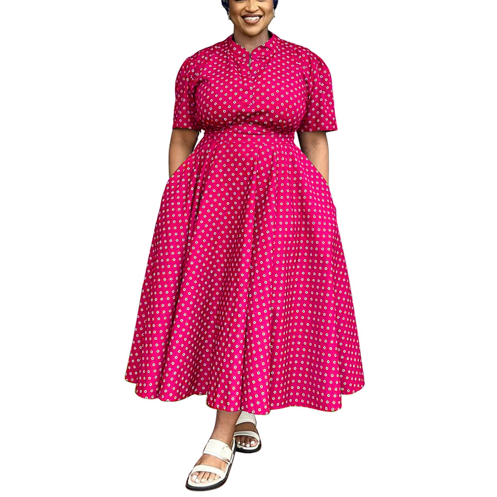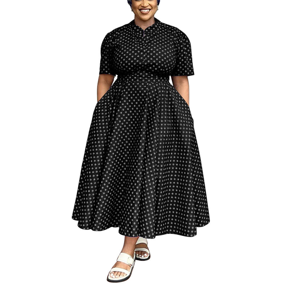 Women Clothing Summer Short Sleeve V neck Bohemian Polka Dot Print Dress plus Size Maxi Dress Women