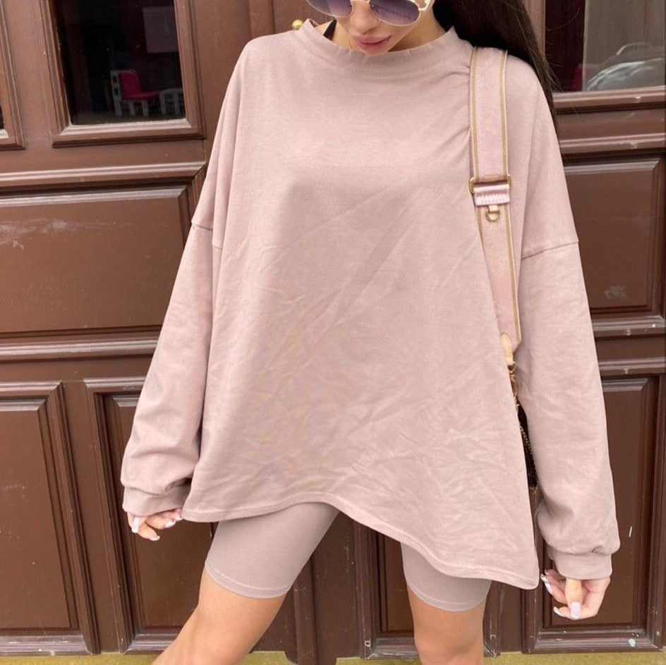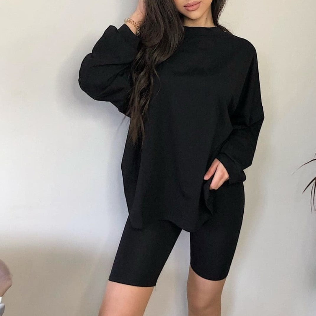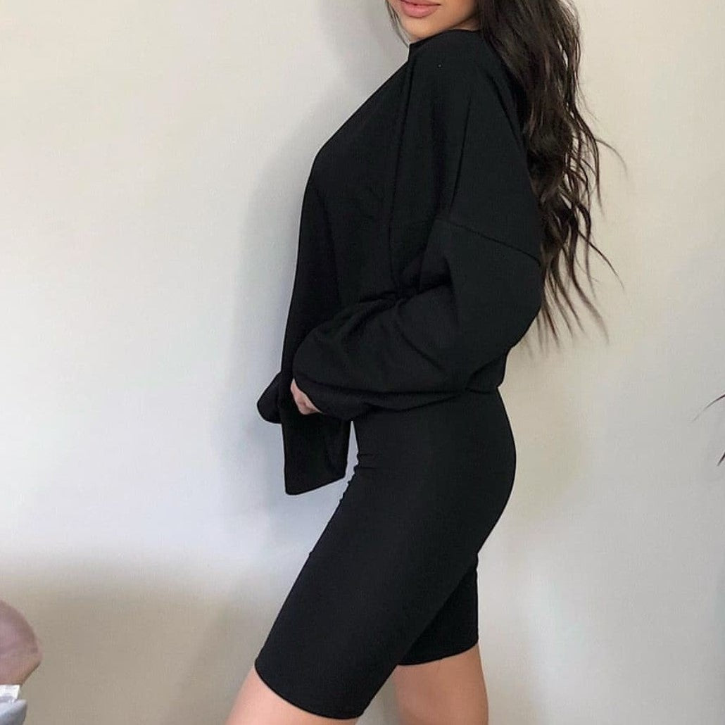 - Women Clothing Two-Piece Set with Belt Long Sleeve Solid Color Home Loose Sports Casual Set