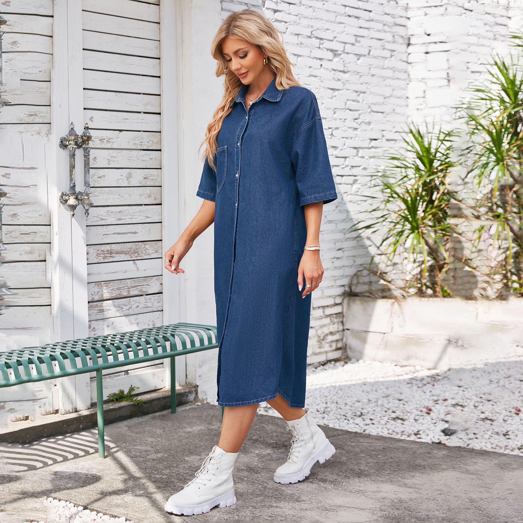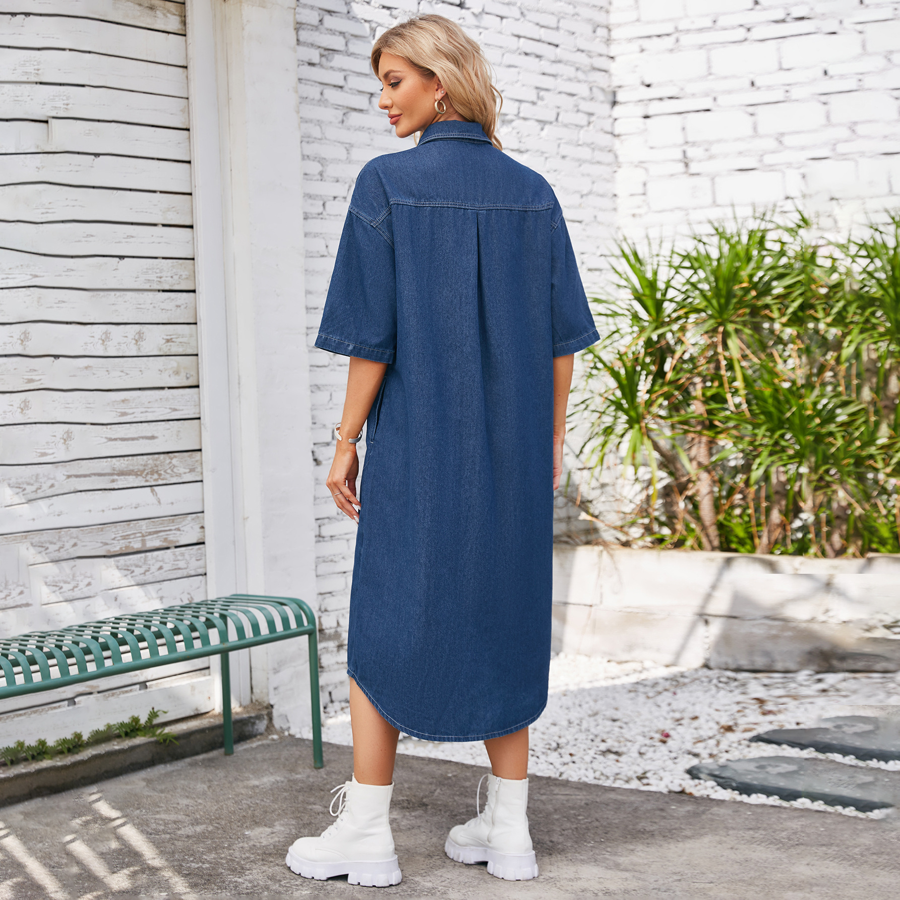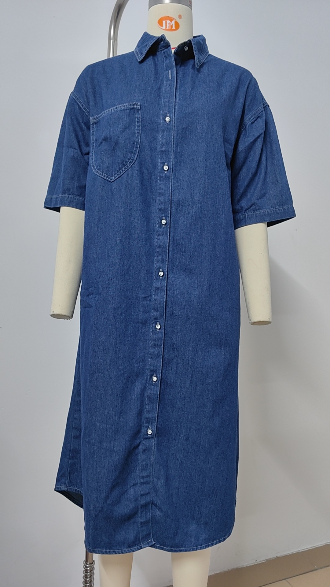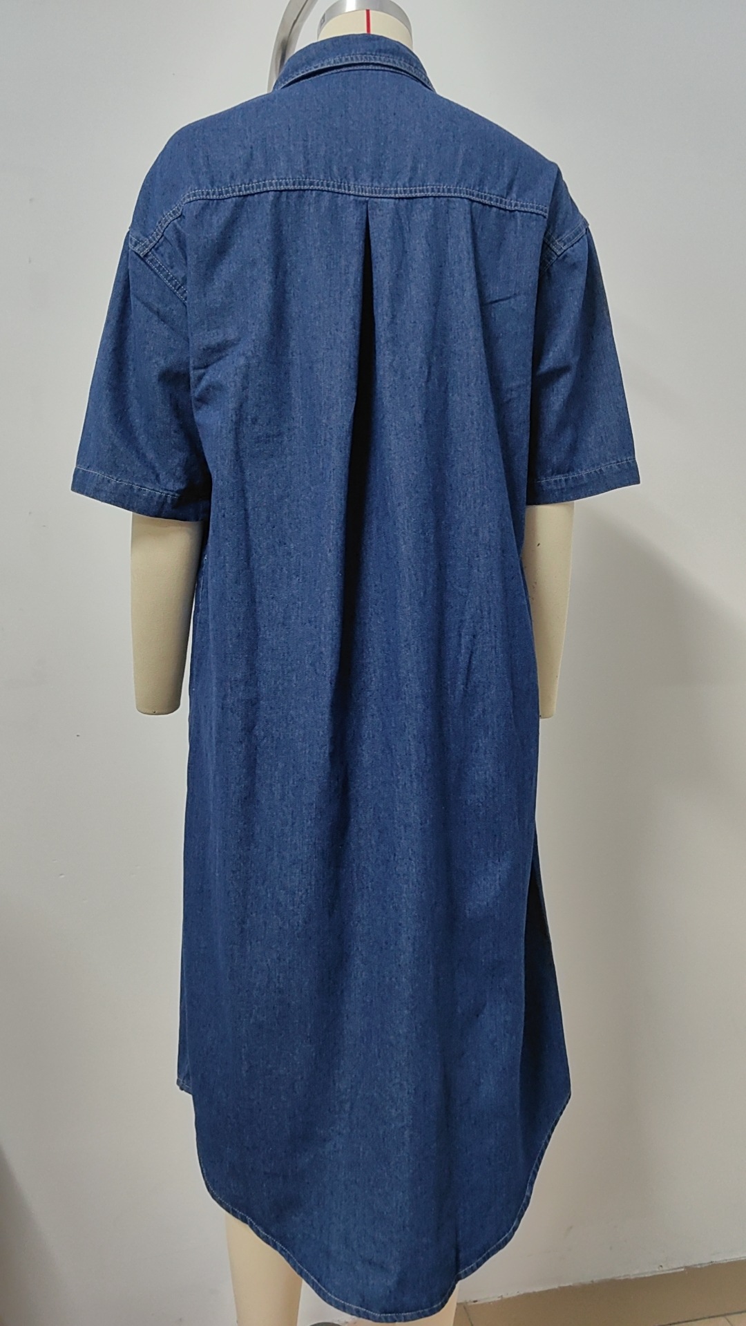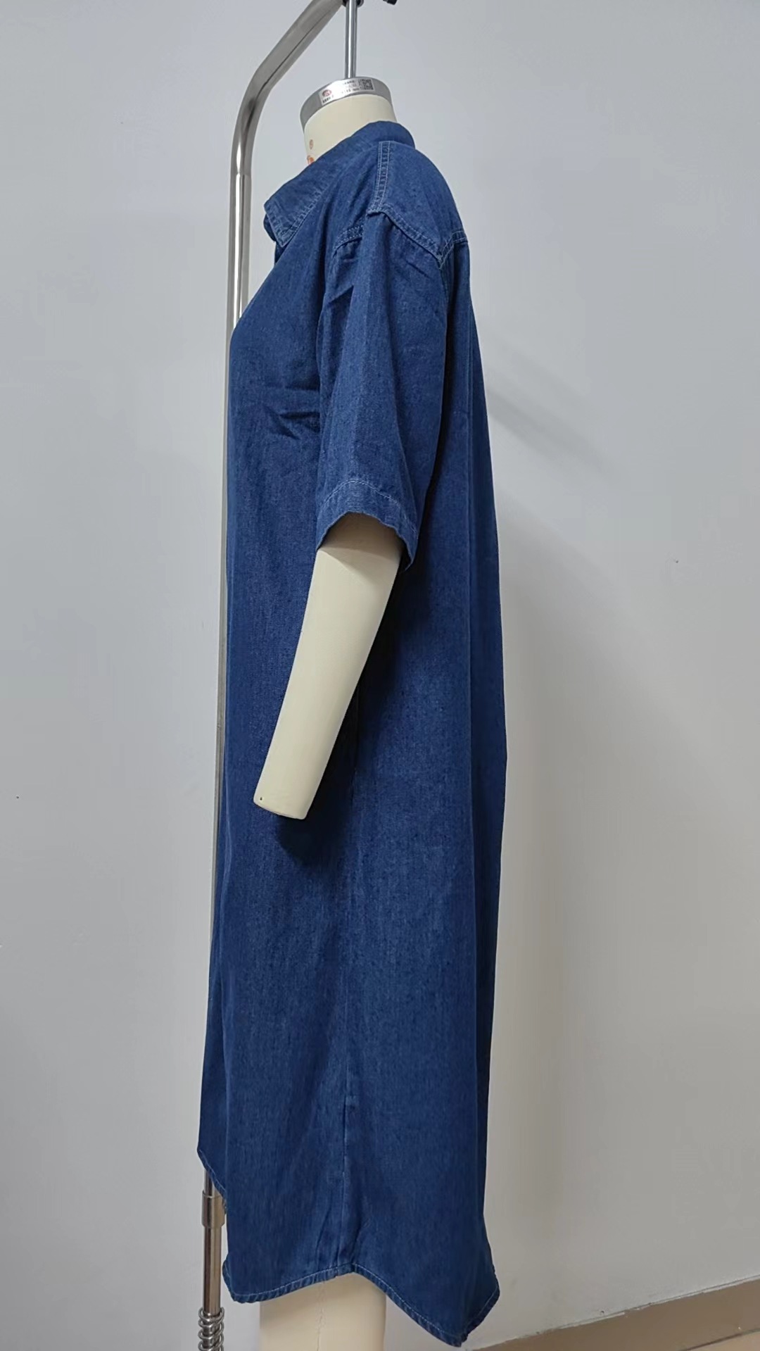 Women Clothing Washed Casual Denim Dress Short Sleeve Dress