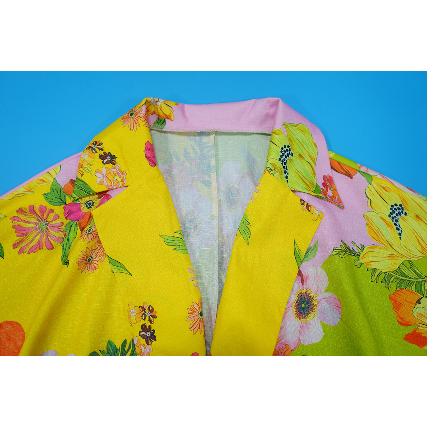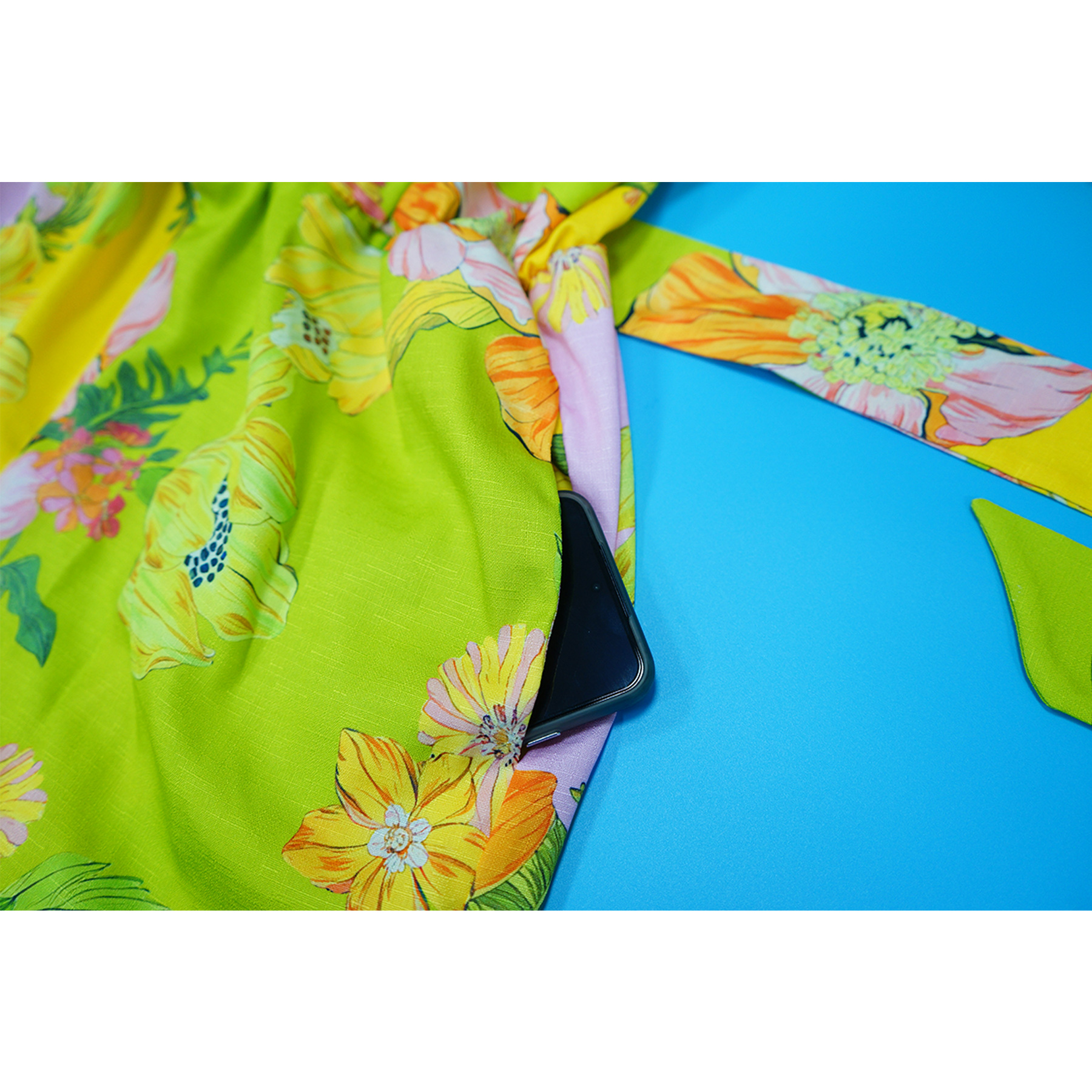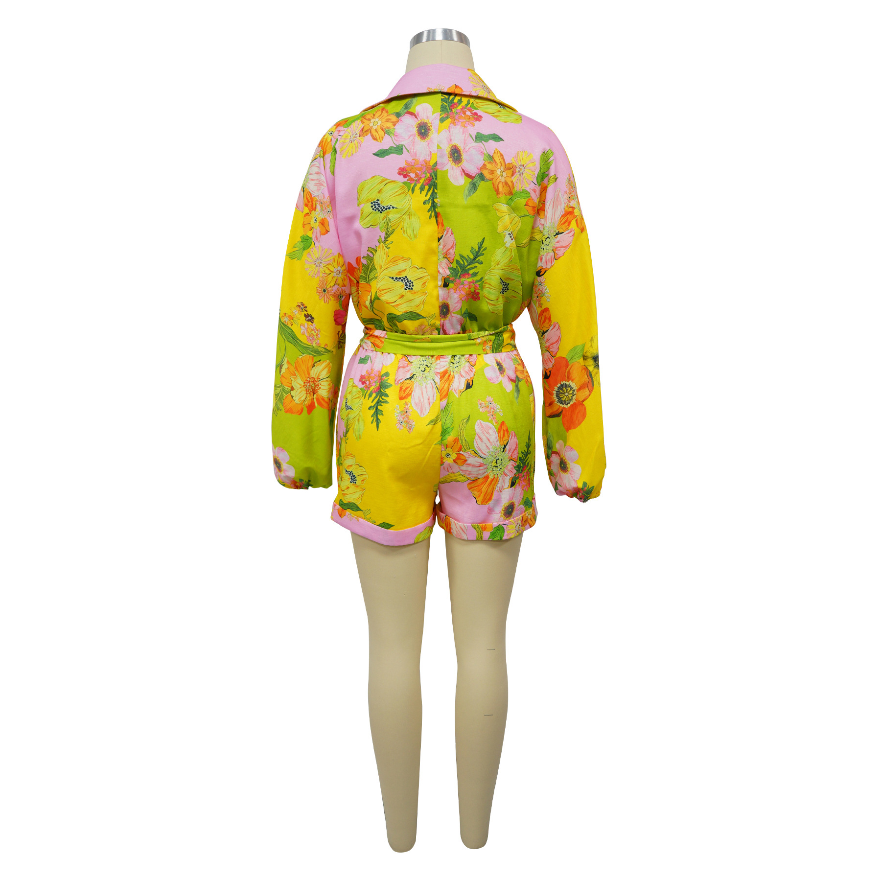 Women Linen Print With Pocket Long Sleeve Green Collar Jumpsuit Women