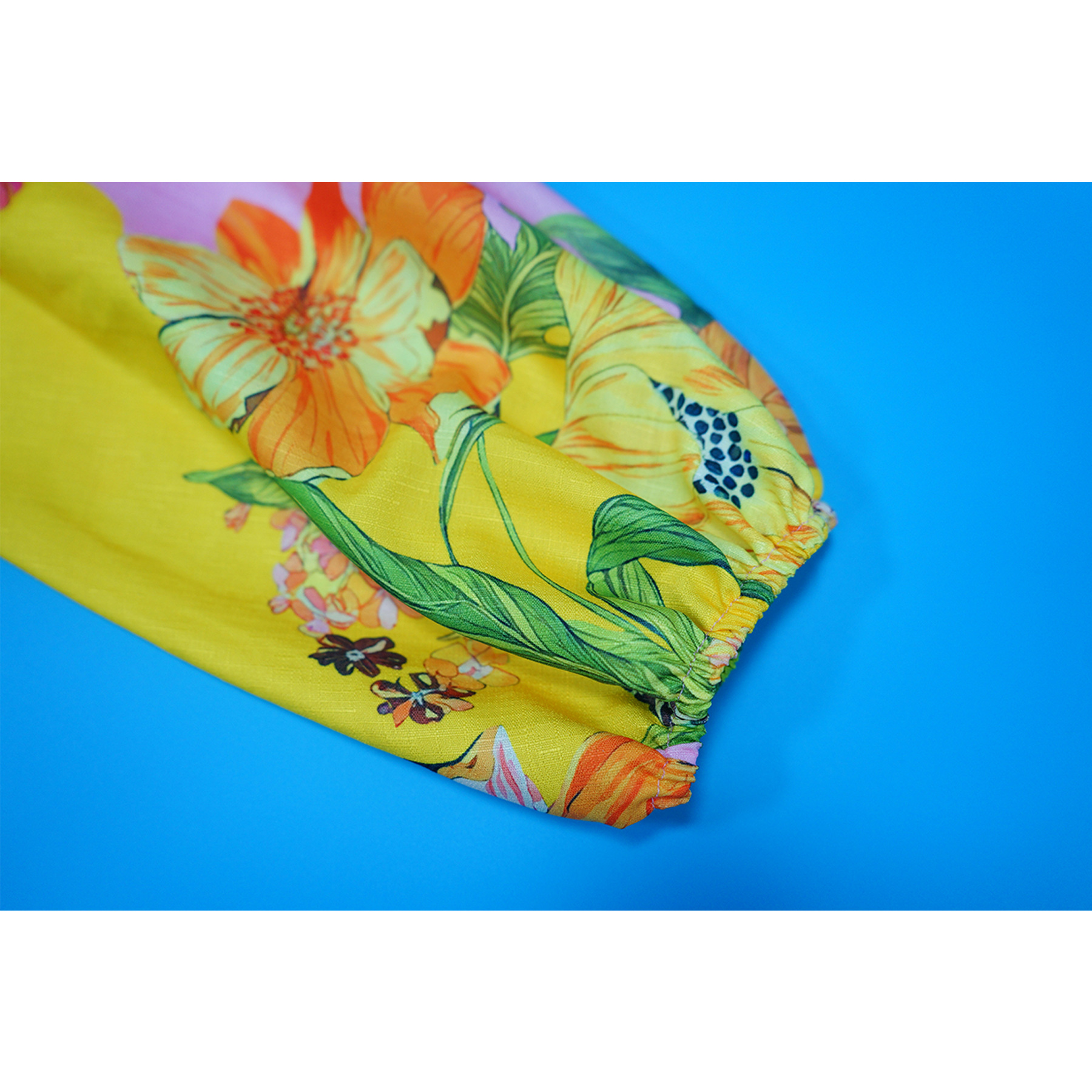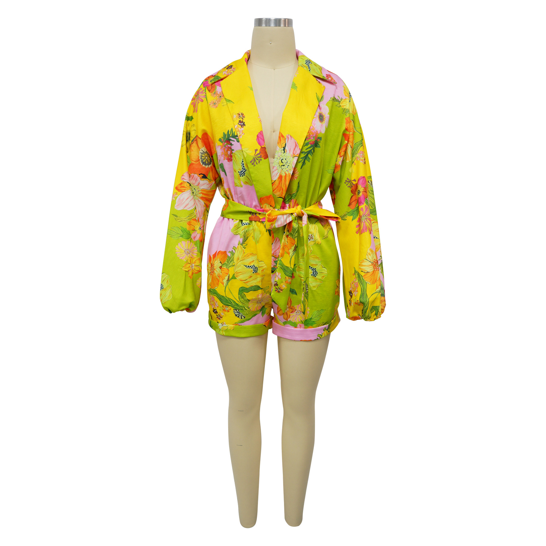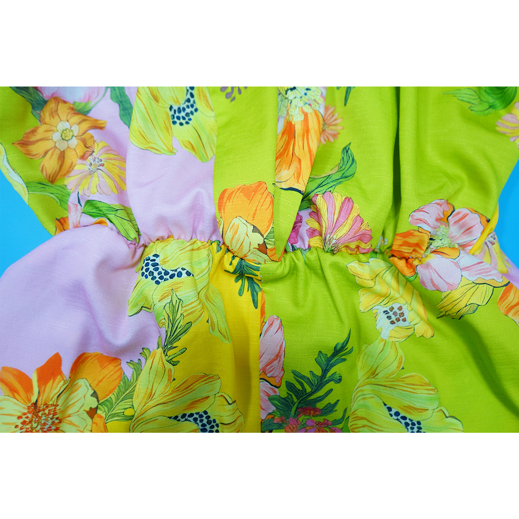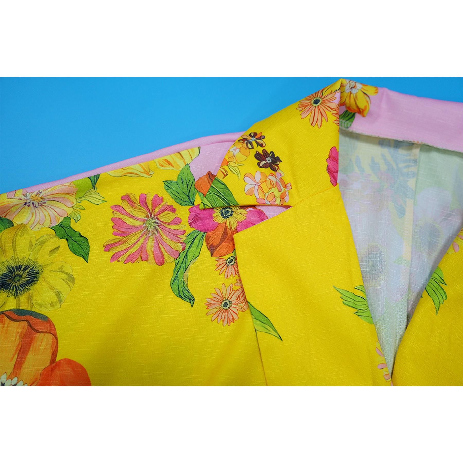 Women Linen Print With Pocket Long Sleeve Green Collar Jumpsuit Women