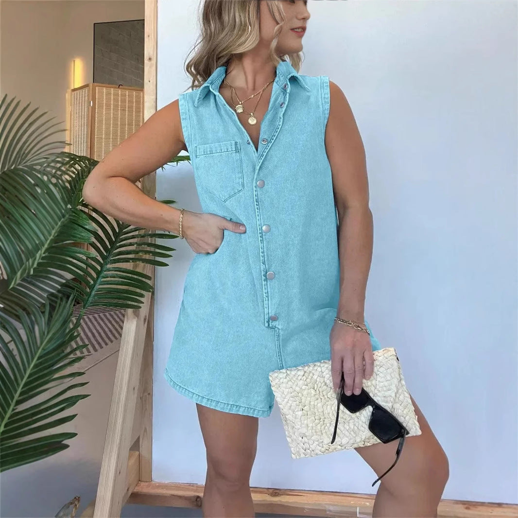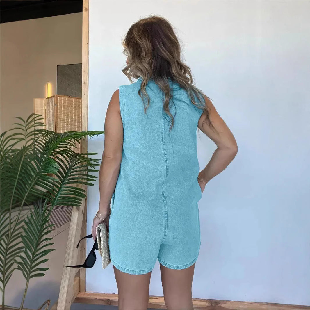 Women Loose Casual Jeans Single Pocket Jumpsuit