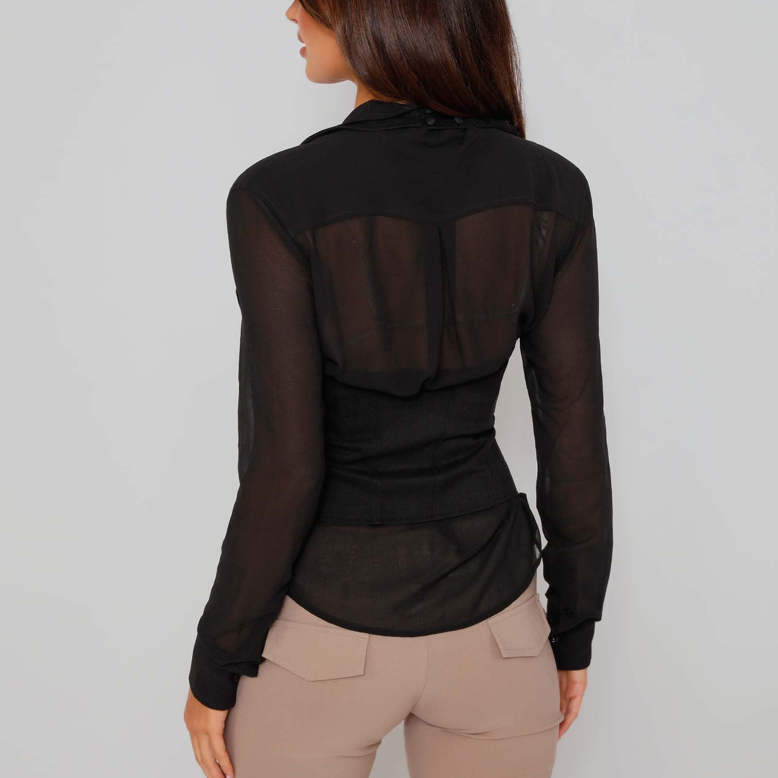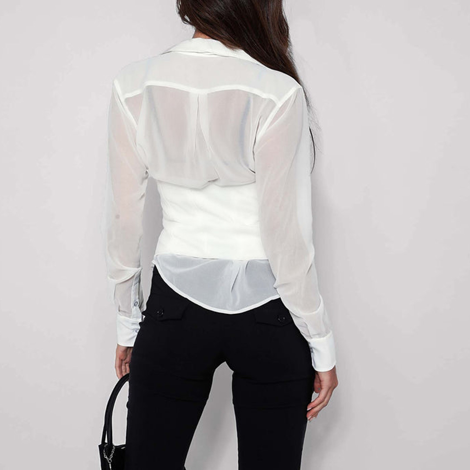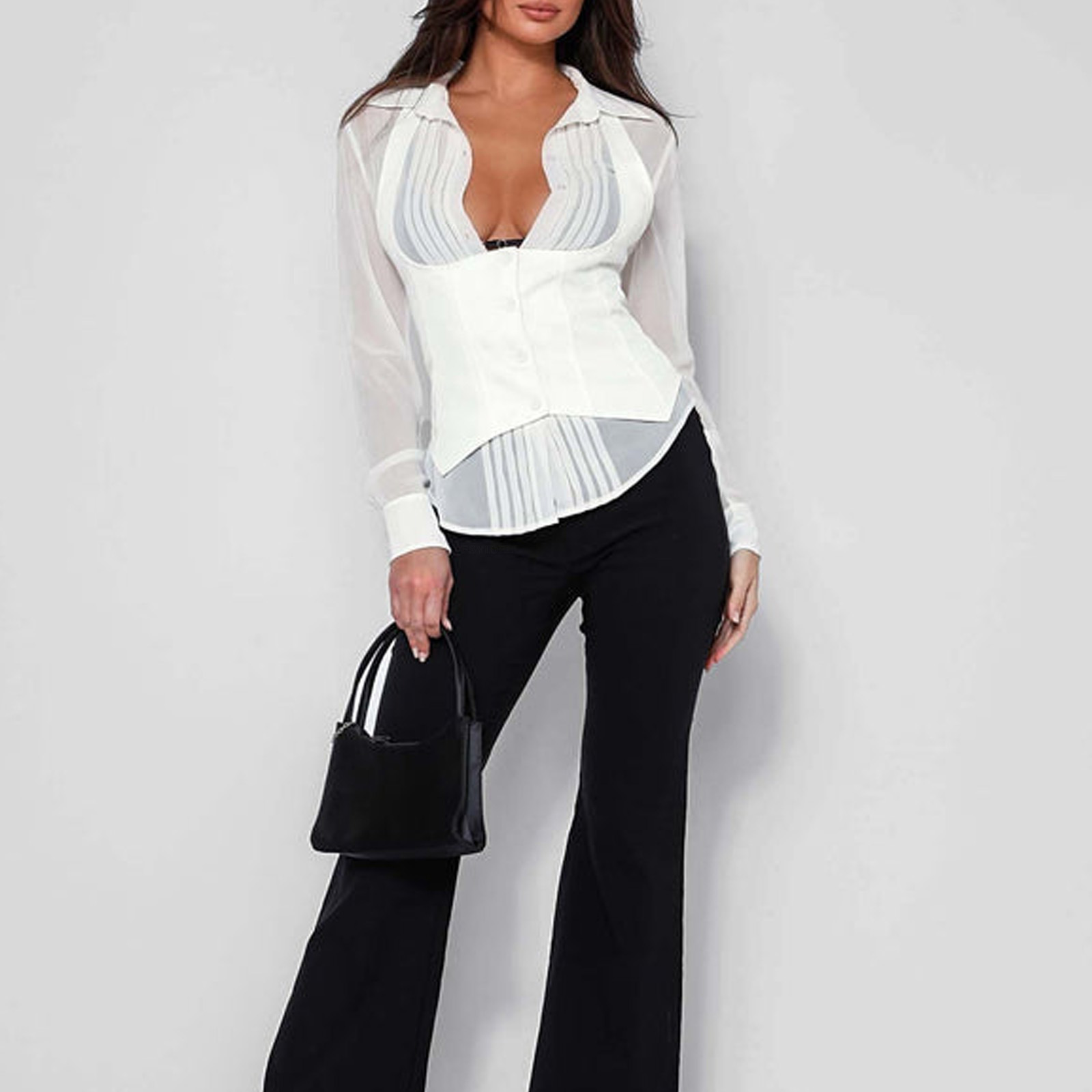Women Polo Collar Shirt Vest Two Piece Set Sexy Halter Waist Tight Top Suit
