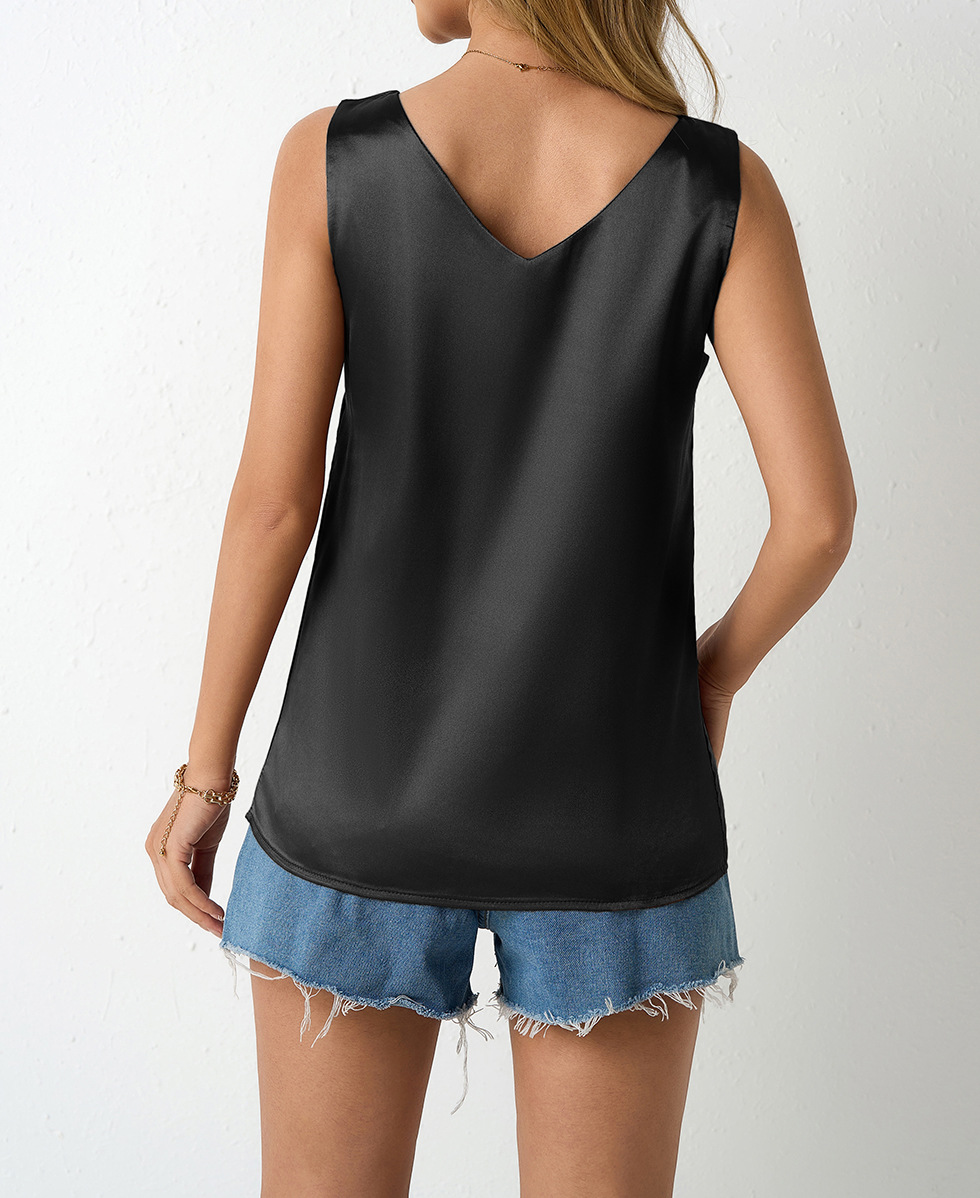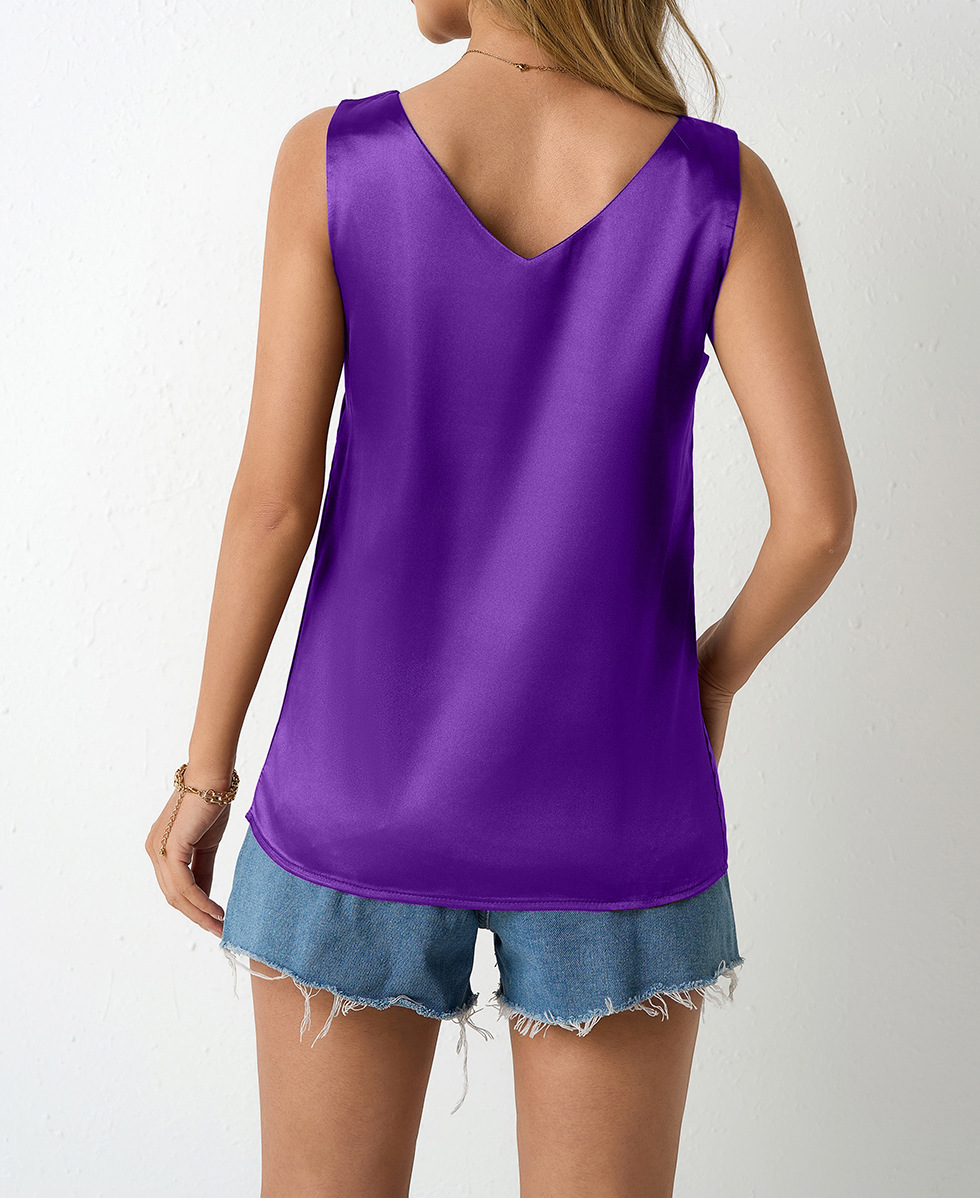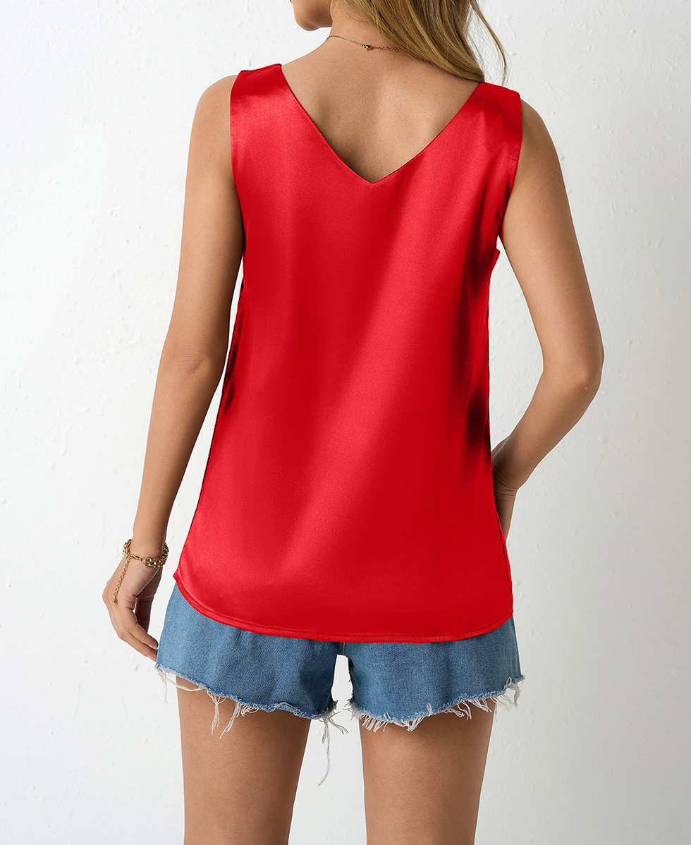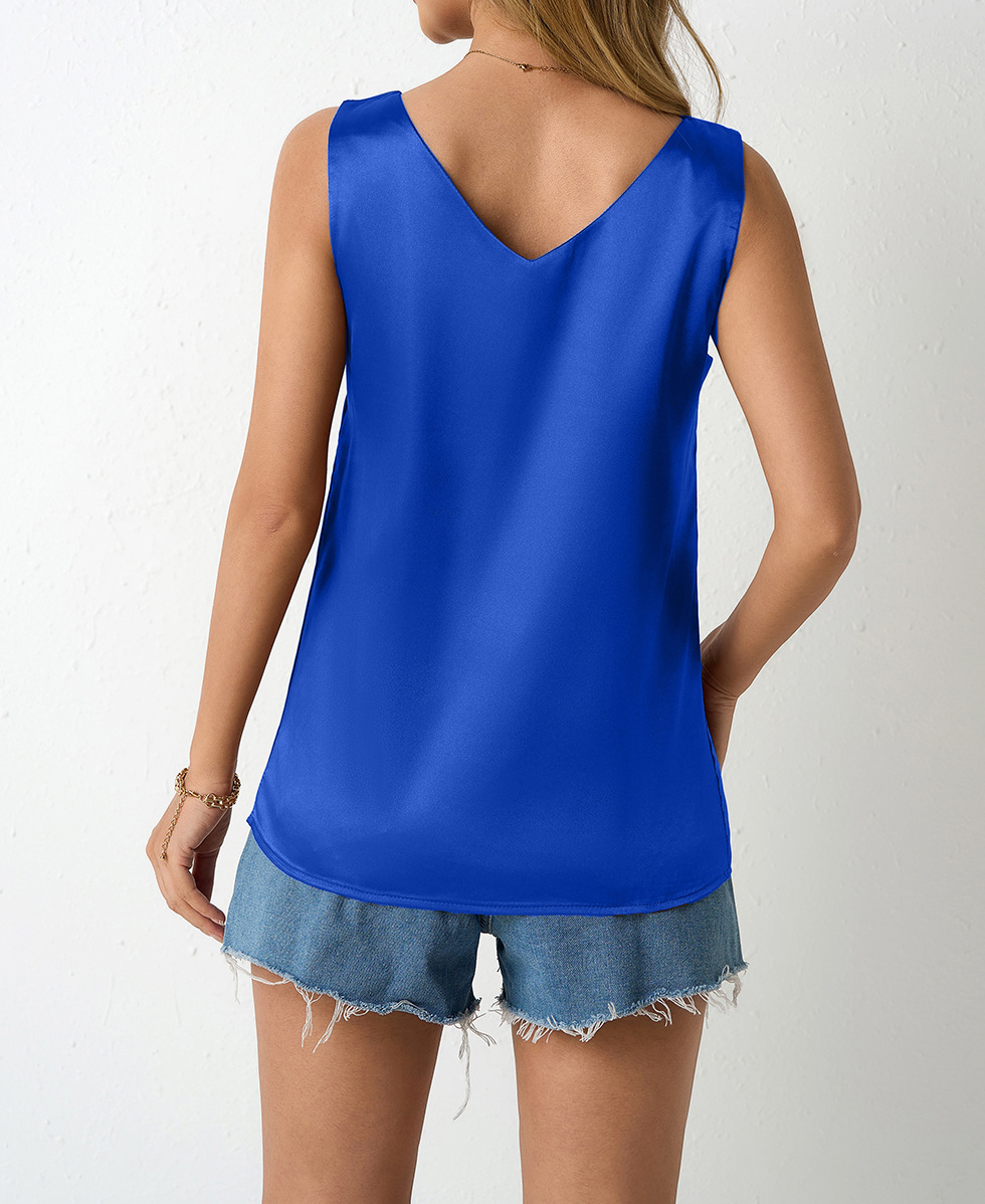 Women Spring Summer Satin Vest V neck Casual Camisole Sleeveless Shirt Summer