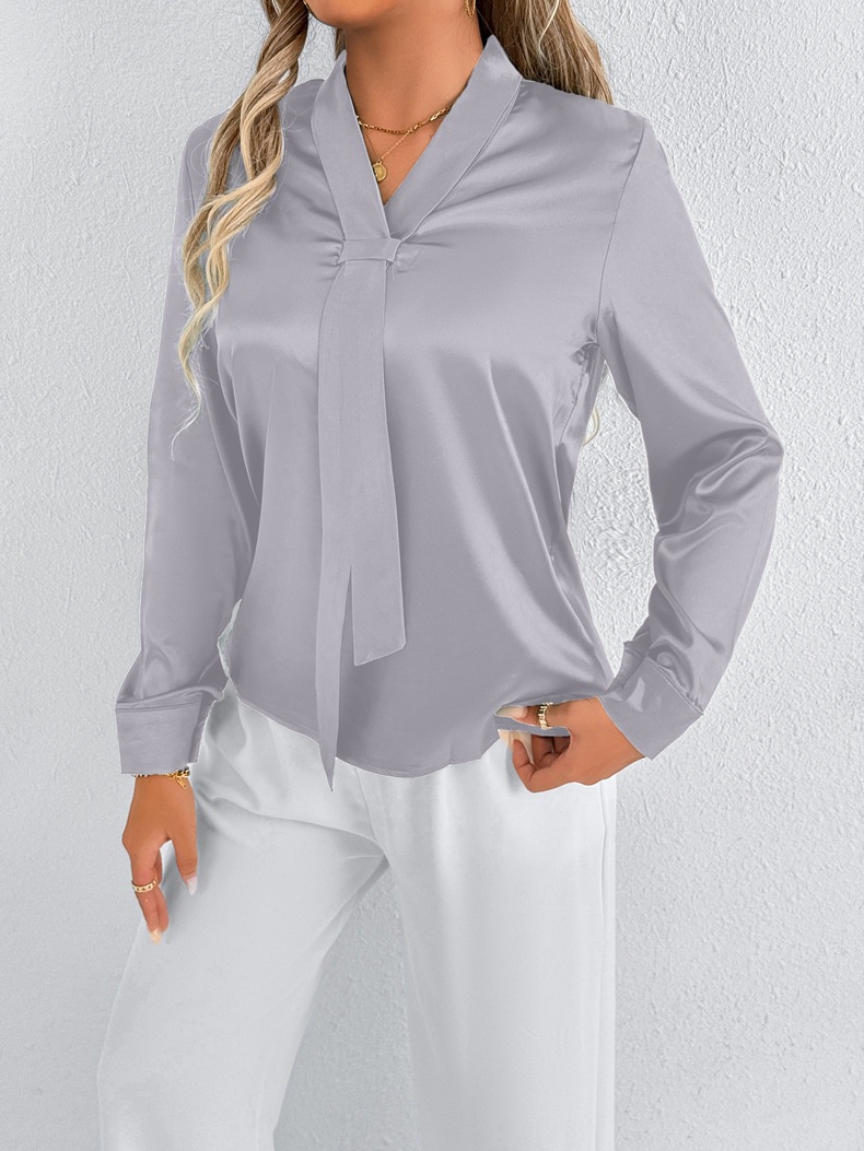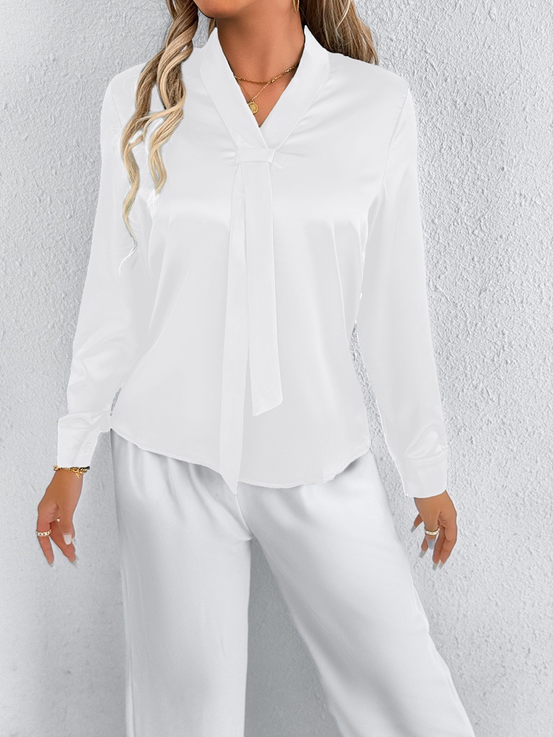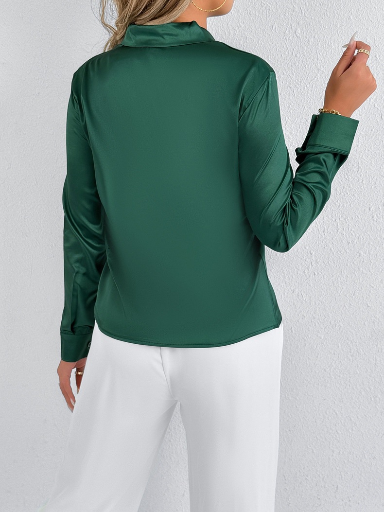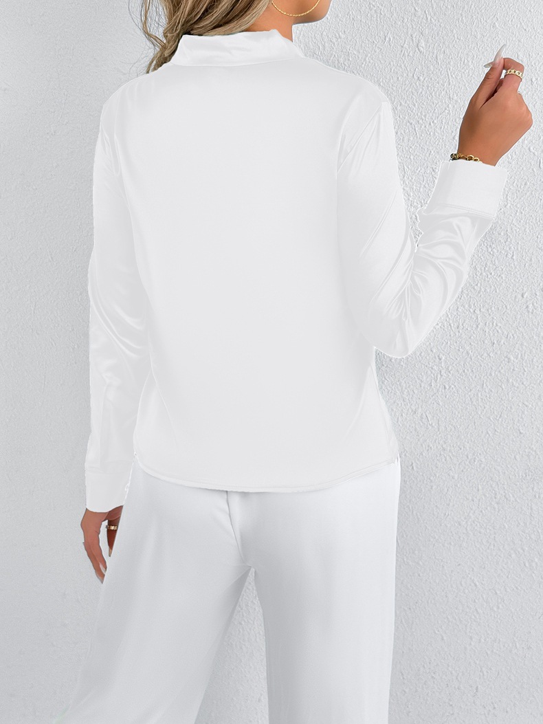 Women Summer Satin Shirt White Women Long Sleeve Satin Top Shirt