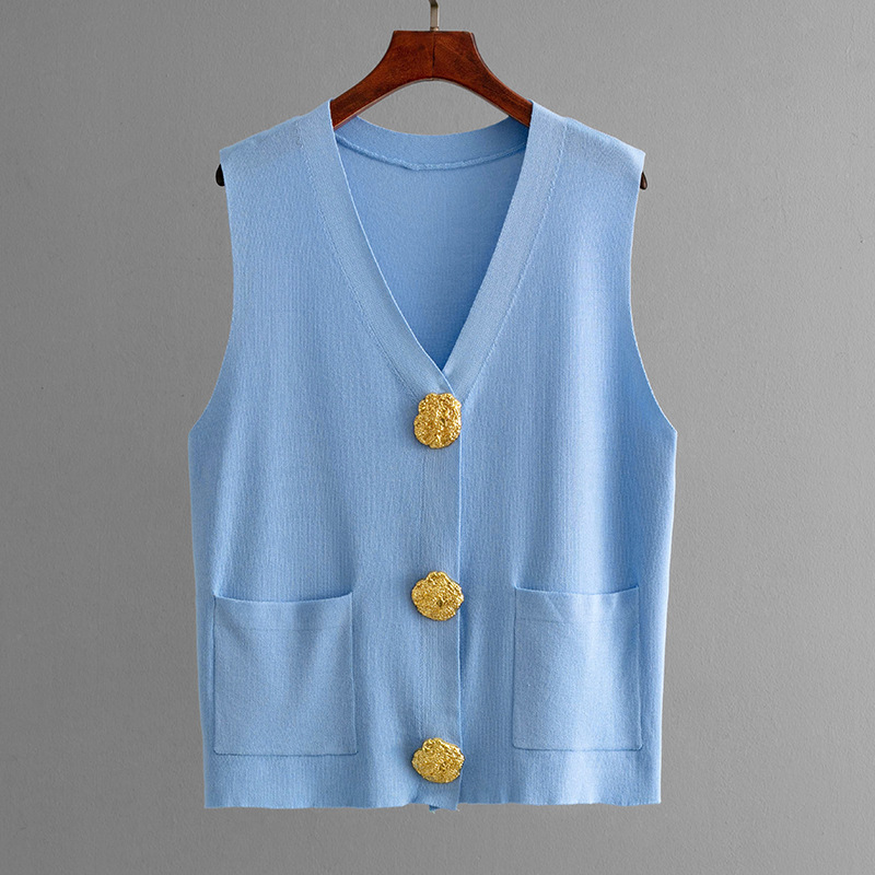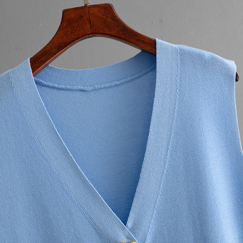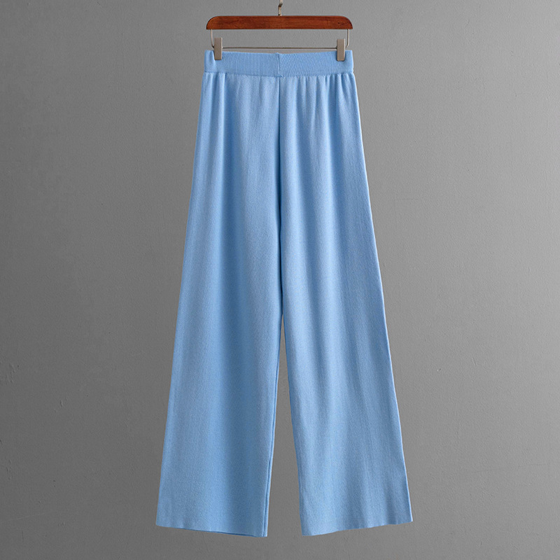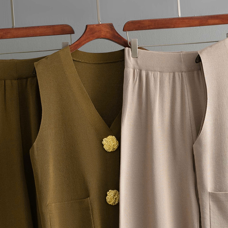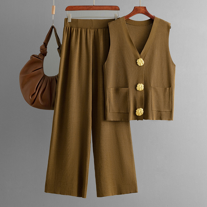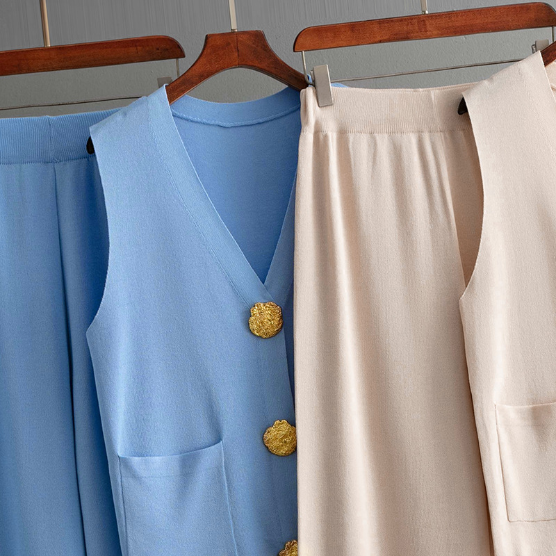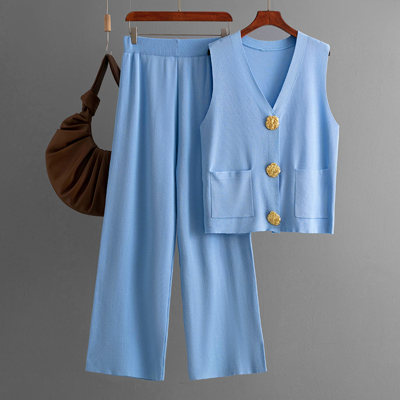 Women Summer Sleeveless Button Knitted Top Solid Color Casual Wide Leg Pants Two Piece Set